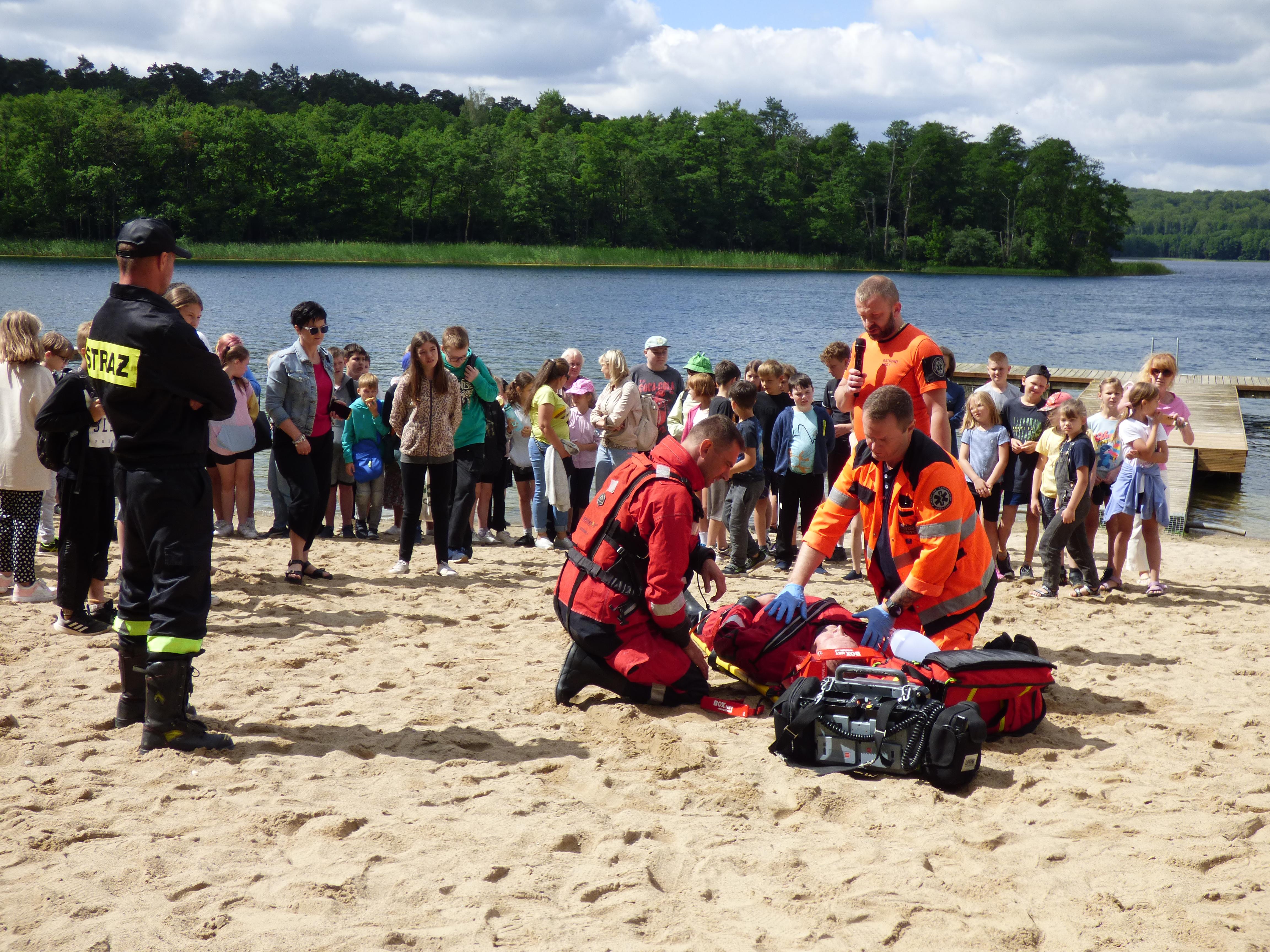 Pikniki edukacyjne „Bezpieczne wakacje 2024” organizowane przez olsztyńskie Starostwo Powiatowe, KMP w Olsztynie i Zarząd Zlewni w Olsztynie odbyły się w gminie Barczewo na plaży w Tumianach nad jez. Orzyc, w gminie Biskupiec w Rukławkach nad jez. Dadaj oraz w gminie Dobre Miasto w Swobodnej nad jez. Limajno.