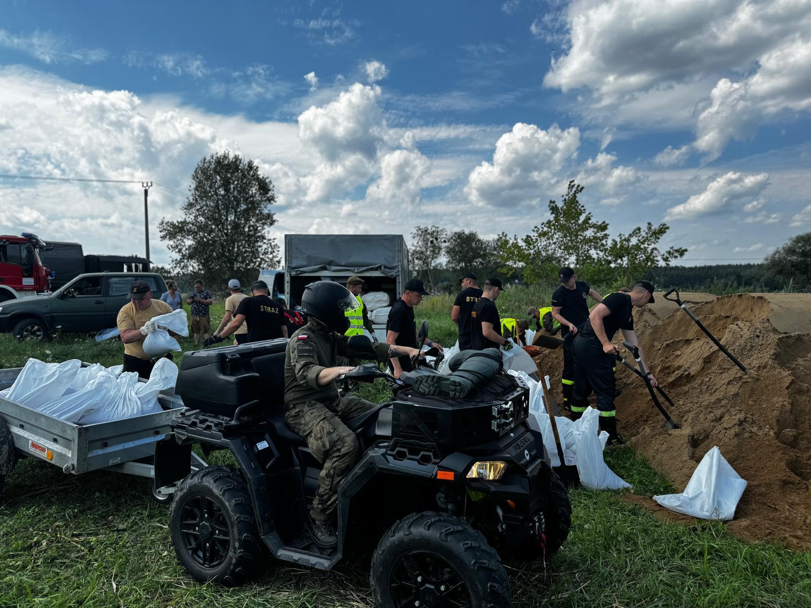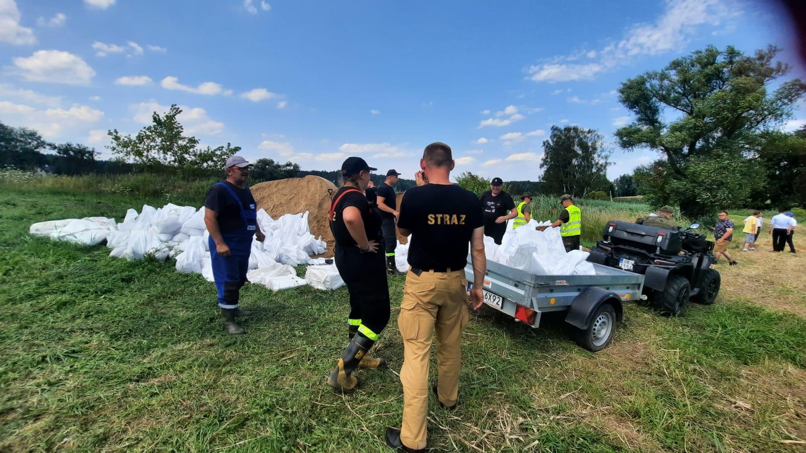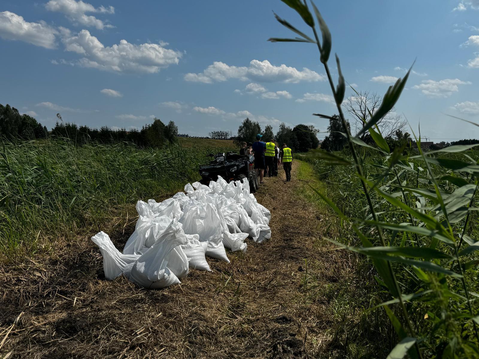 W dniu dzisiejszym rozpoczęto prace mające za zadanie umocnienie obwałowania i zahamowanie przepływu wody przez wyrwę powstałą w obwałowaniu. W działaniach biorą udział służby: OSP Bartąg, Państwowa Straż Pożarna w Olsztynie, 4 Warmińsko-Mazurska Brygada Wojsk Obrony Terytorialnej, pracownicy Zarządu Zlewni