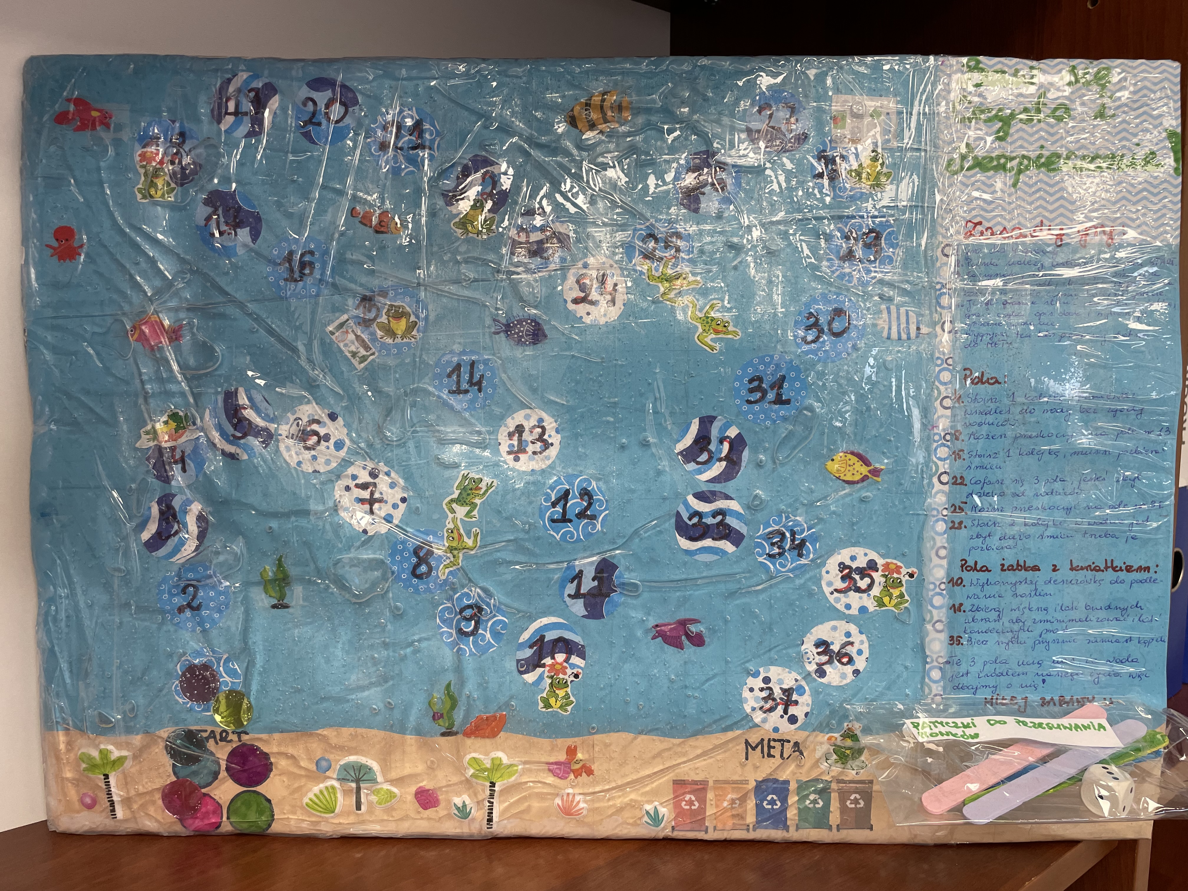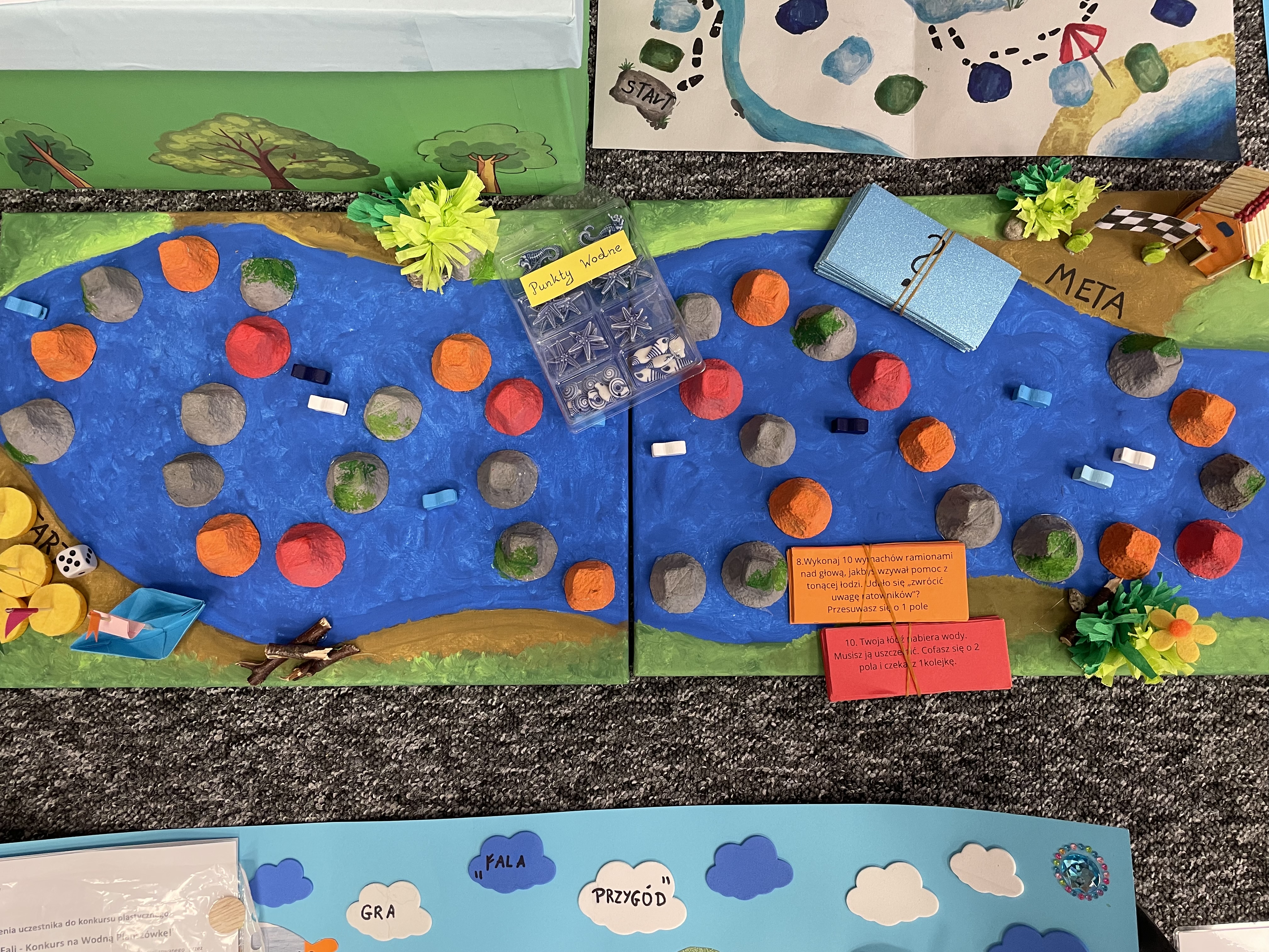 Wpłynęło wiele fascynujących prac, które odzwierciedlały kreatywność i zaangażowanie uczestników. Jury miało niełatwe zadanie – zagrało w 38 wodnych planszówek przygotowanych przez 53 uczniów z 13 Szkół Podstawowych. Ocena nadesłanych projektów wymagała uwzględnienia wielu aspektów, takich jak samodzielność wykonania, pomysłowość, estetyka oraz zgodność z tematyką konkursu.