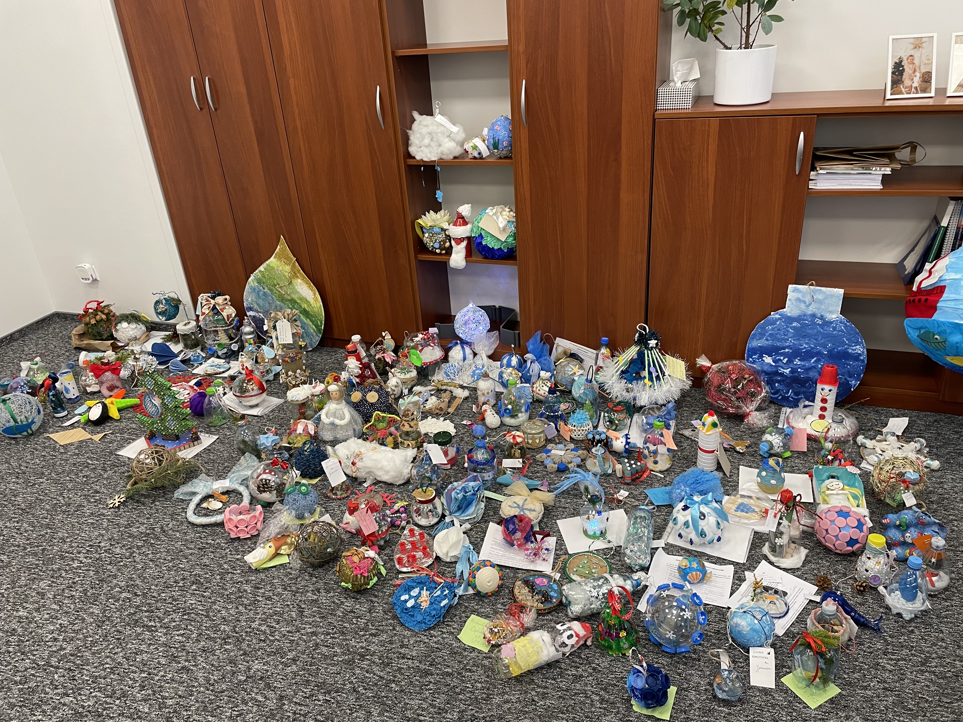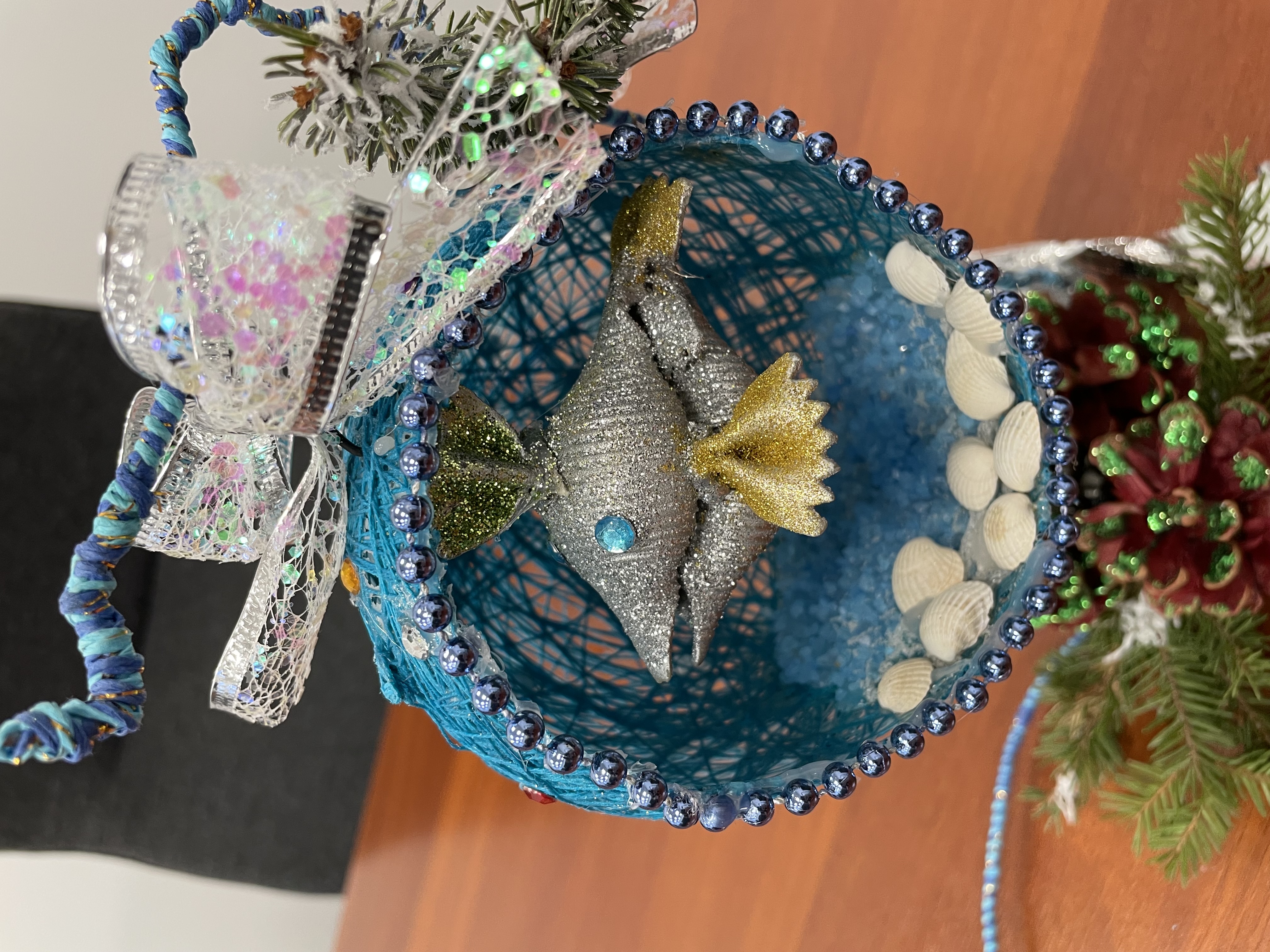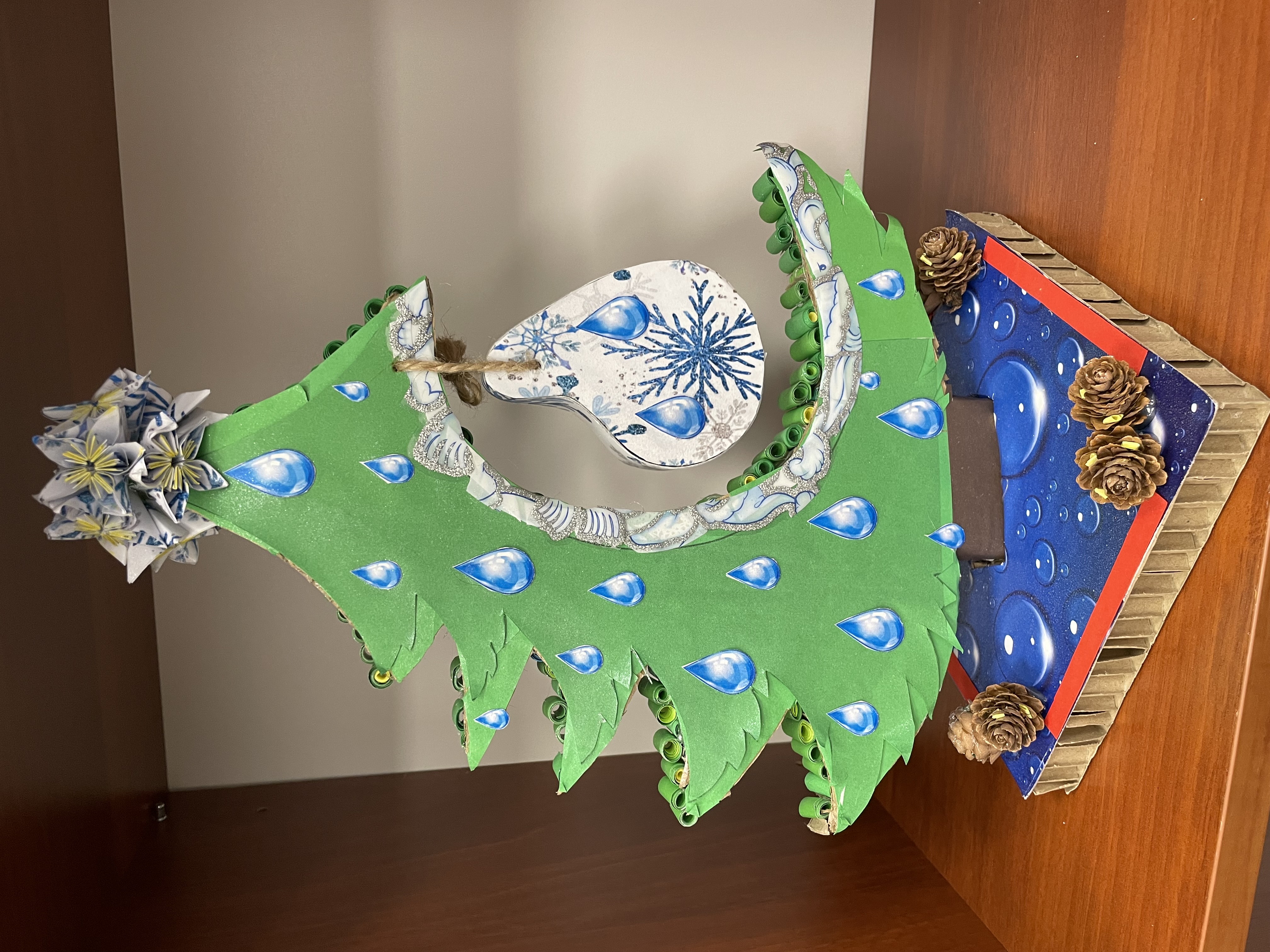 Zadanie konkursowe polegało na stworzeniu ekologicznej ozdoby choinkowej związanej z wodą z materiałów recyklingowych lub naturalnych.