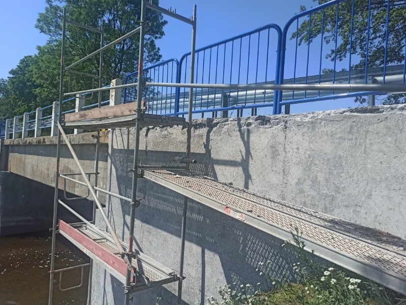 - Czyszczenie i zabezpieczenie antykorozyjne elementów stalowych konstrukcji jazu,