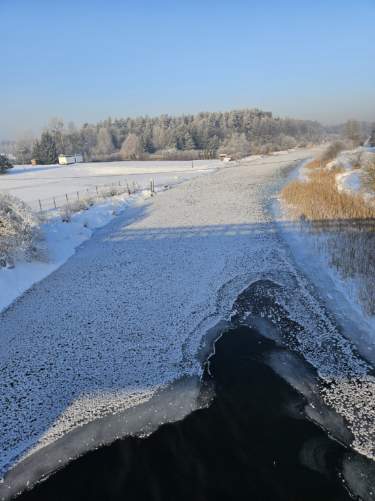 Na terenie województwa warmińsko‑mazurskiego obowiązuje ostrzeżenie hydrologiczne I stopnia, związane z możliwością rozwoju zjawisk lodowych. Mogą one powodować lokalne wahania poziomów wód, a miejscami także krótkotrwałe przekroczenia strefy wody wysokiej. Po wczorajszym wzroście stanu wody na rzece Ełk w Prostkach, dziś obserwujemy znaczący spadek. Przeprowadzono kontrolę odcinka rzeki od jazu w Nowej Wsi Ełckiej do jazu w Boguszach: