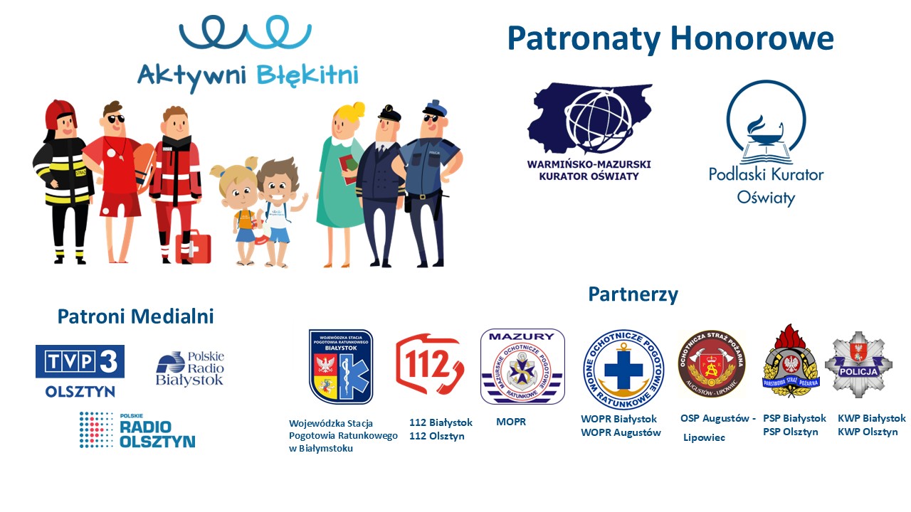 Swoją gotowość do współpracy i wsparcia w działaniach edukacyjnych potwierdzili: Centrum Powiadamiania Ratunkowego Numeru Alarmowego 112 w Białymstoku, Centrum Powiadamiania Ratunkowego Numeru Alarmowego 112 w Olsztynie, Komenda Wojewódzka Państwowej Straży Pożarnej w Białymstoku, Komenda Wojewódzka Państwowej Straży Pożarnej w Olsztynie, Komenda Wojewódzka Policji w Białymstoku, Komenda Wojewódzka Policji w Olsztynie, Mazurskie Ochotnicze Pogotowie Ratunkowe w Giżycku, Wodne Ochotnicze Pogotowie Ratunkowe w Białymstoku, Augustowskie Wodne Ochotnicze Pogotowie Ratunkowe, Wojewódzka Stacja Pogotowia Ratunkowego w Białymstoku oraz Ochotnicza Straż Pożarna Augustów - Lipowiec.