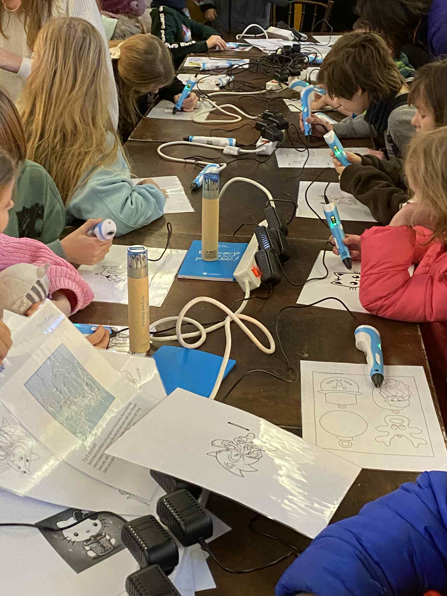 Następnie, nasi młodzi uczniowie poznawali nowoczesne narzędzia. Podczas warsztatów technologicznych mieliśmy do dyspozycji długopisy 3D, druk 3D, a także elementy robotyki. Spotkania kończyliśmy opowieściami o Barce Lemara, przybliżając historię naszego miasta, wody oraz żeglugi.