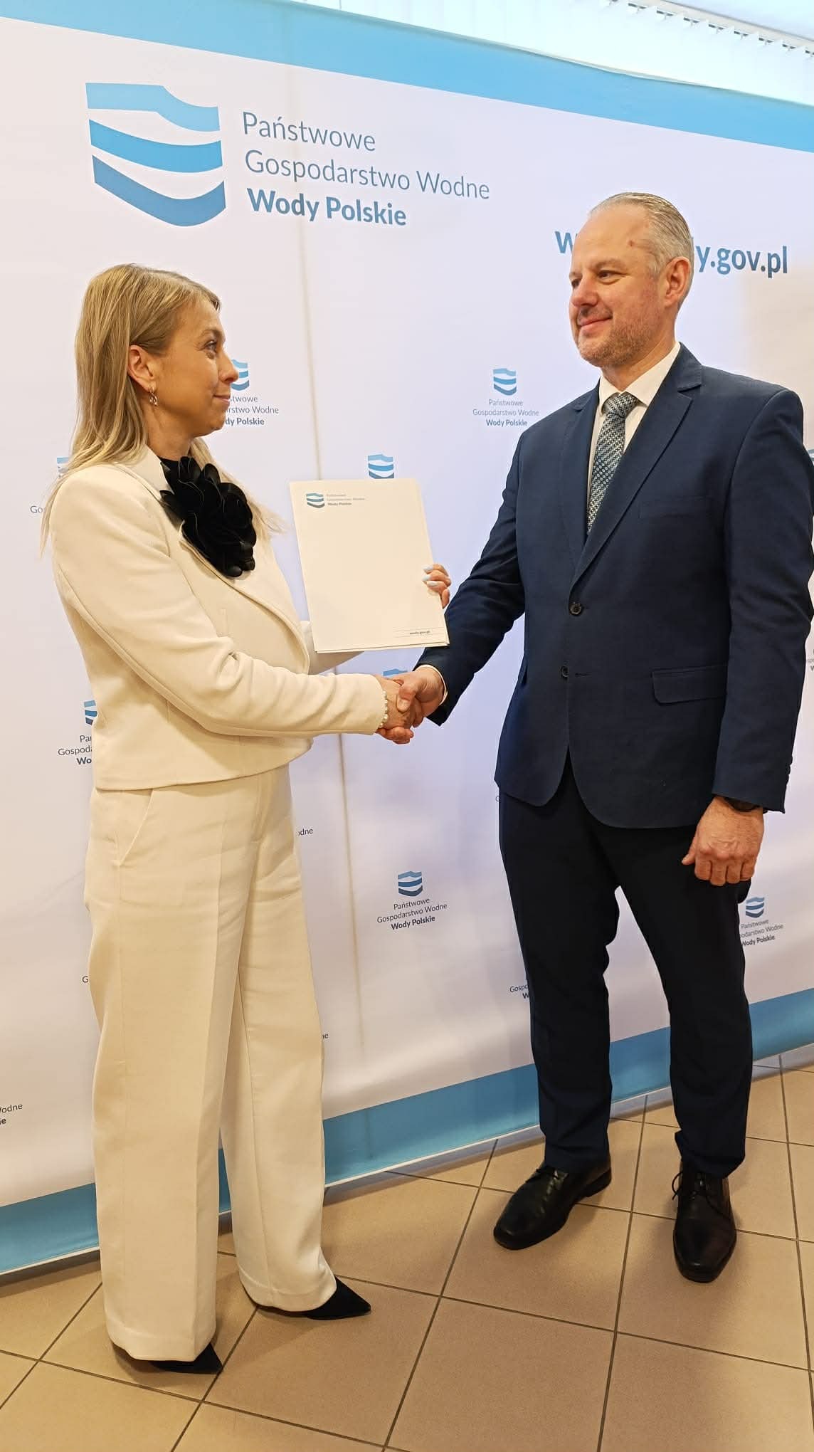 Nominację, w imieniu Pana Prezesa wręczyła Dyrektor Państwowego Gospodarstwa Wodnego Wody Polskie RZGW w Bydgoszczy - Pani Agnieszka Siłacz.