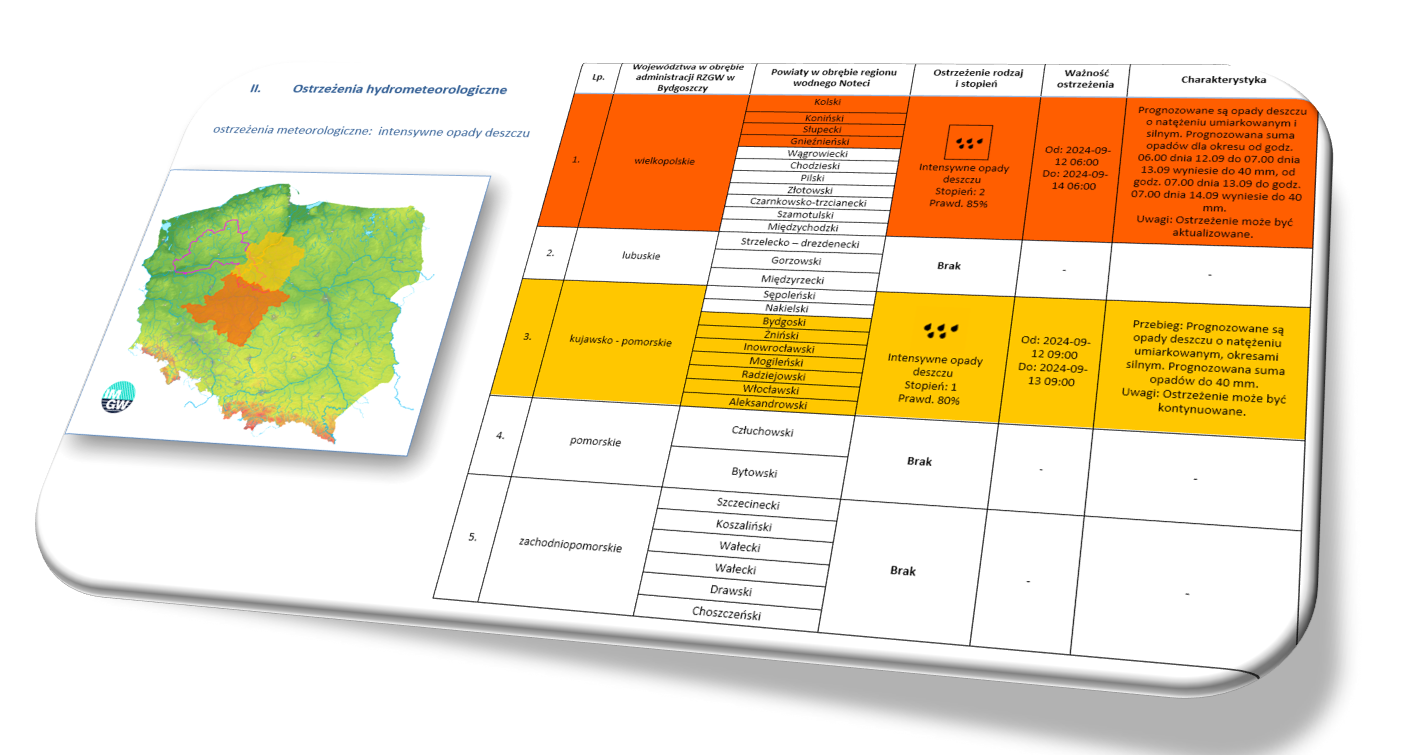 - Ostrzeżenia hydrologiczne, ostrzeżenia meteorologiczne: