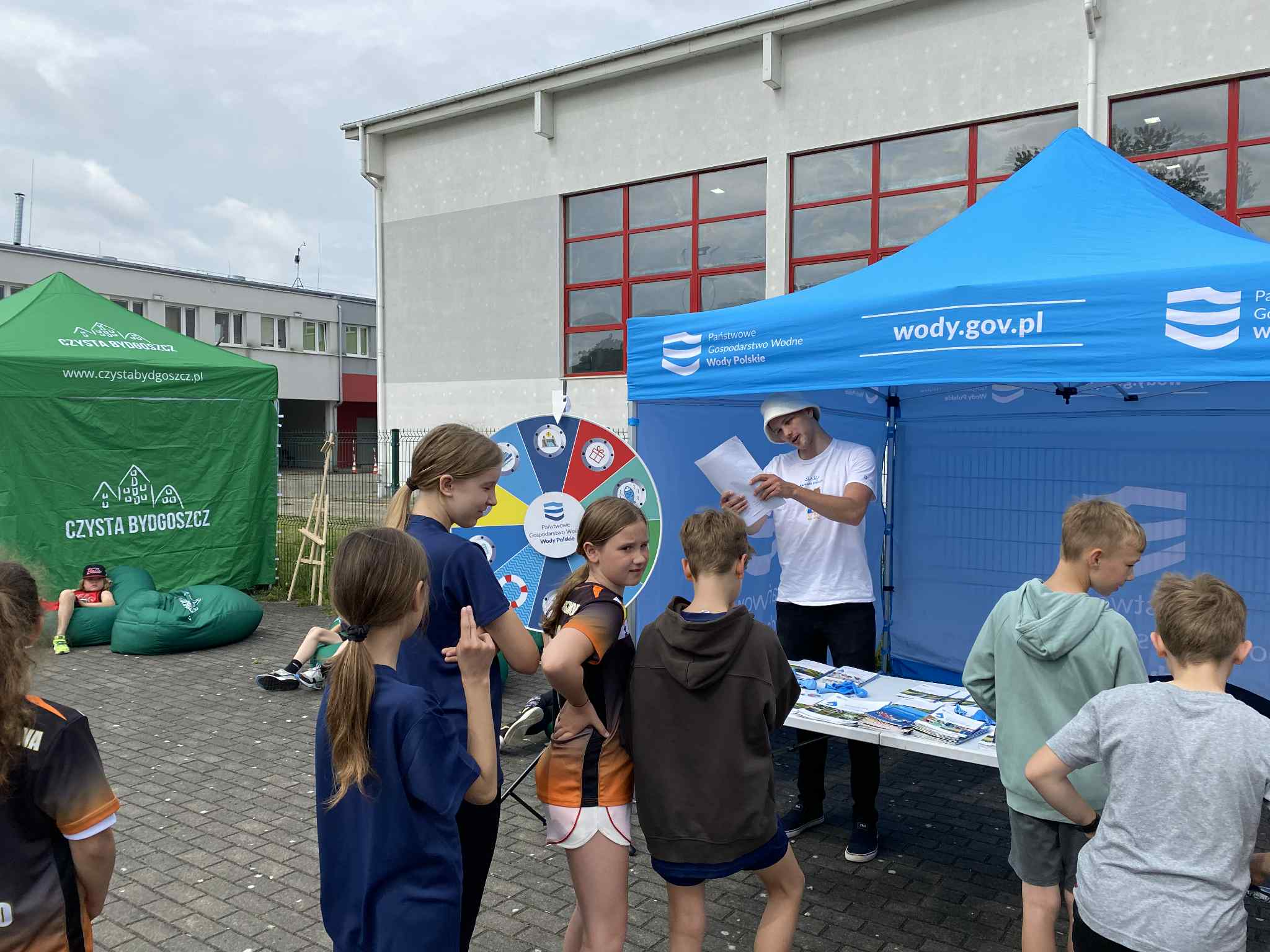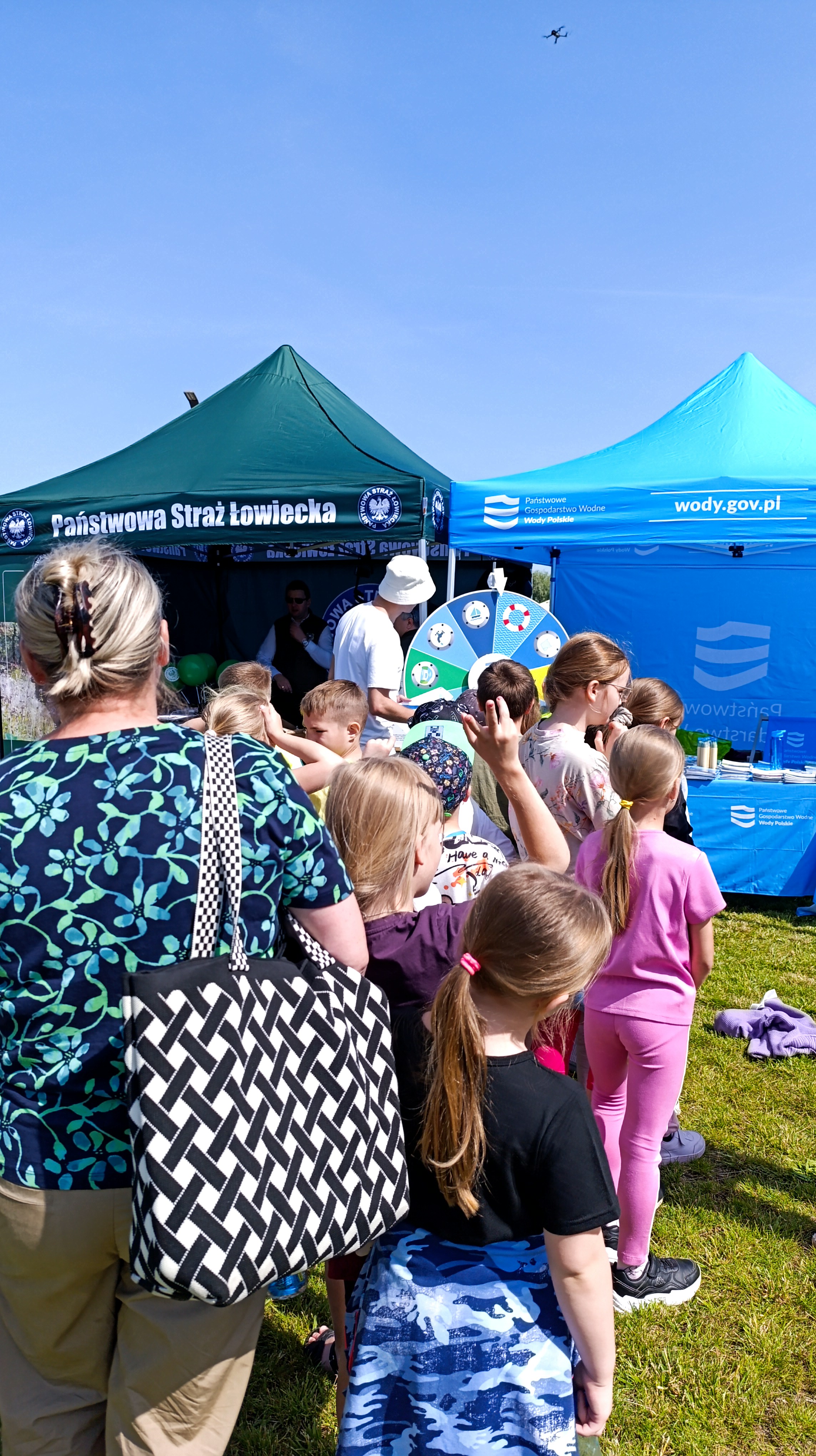 Rywalizacji zarówno sportowej oraz wiedzowej przy stoisku Wód Polskich. W naszym specjalnie przygotowanym stoisku informacyjnym, chętni mogli dowiedzieć się m.in. czym jest program „Stop Powodzi”, Aktywni Błękitni, a także jakie działania podejmujemy na rzecz retencji wody oraz jak ważna jest dbałość o zasoby wodne w kontekście zmian klimatycznych. Poprzez gry, quizy i interaktywne prezentacje pokazywaliśmy, jak każdy z nas – niezależnie od wieku – może przyczynić się do ochrony środowiska wodnego.