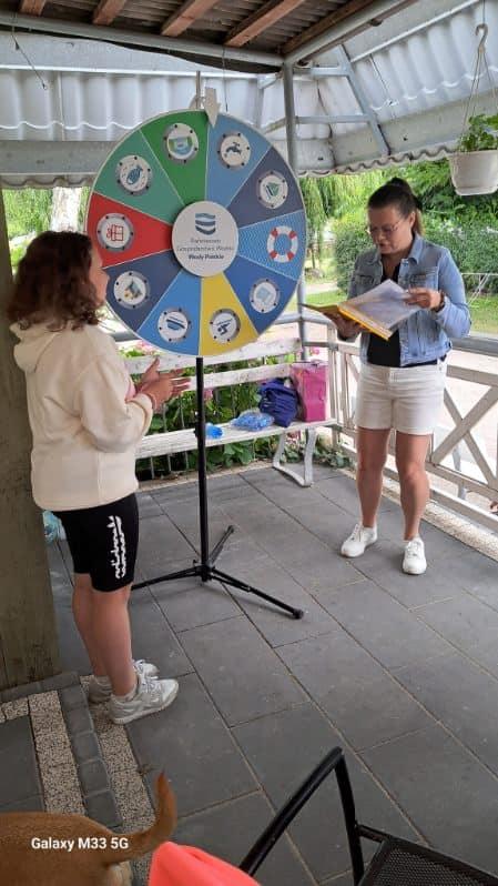 Na zakończenie spotkania wszyscy otrzymali dyplomy Eksperta Wód Polskich oraz pamiątkowe gadżety, na które same zapracowały wykazując się wiedzą przy odpowiedziach udzielanych podczas zabawy kręcenia naszym wodnym kołem fortuny. Będą one przypominały Małym Odkrywcom o zajęciach z Regionu Wodnego Noteci.