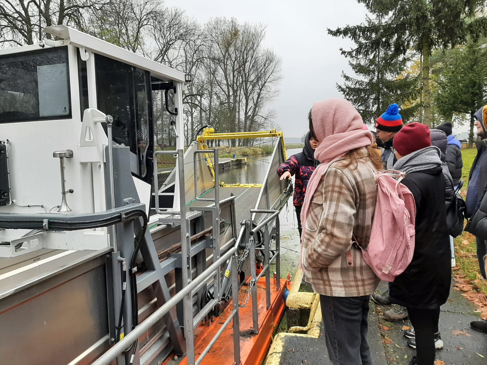 Dla studentów była to doskonała okazja, by zapoznać się z ważnymi zagadnieniami dotyczącymi gospodarki wodnej, poznać obiekty hydrotechniczne (Pakość, Nakło Zachód, Gromadno), a przede wszystkim w praktyce przyjrzeć się postępowi prac remontowanej śluzy Naklo Wschód oraz budowanych przepławek seminaturalnych na obiektach piętrzących rzeki Noteci w ramach realizowanego przez nas projektu „„Przywrócenie drożności morfologicznej rzeki Noteć od Pakości do Krostkowa”. To także przyjrzenie się trwającym właśnie pracom utrzymaniowym przygotowujących nasz region do sezonu zimowego. Nasi goście mieli okazję zobaczyć jak wygląda praca naszego kombajnu kosząco-zbierającego.