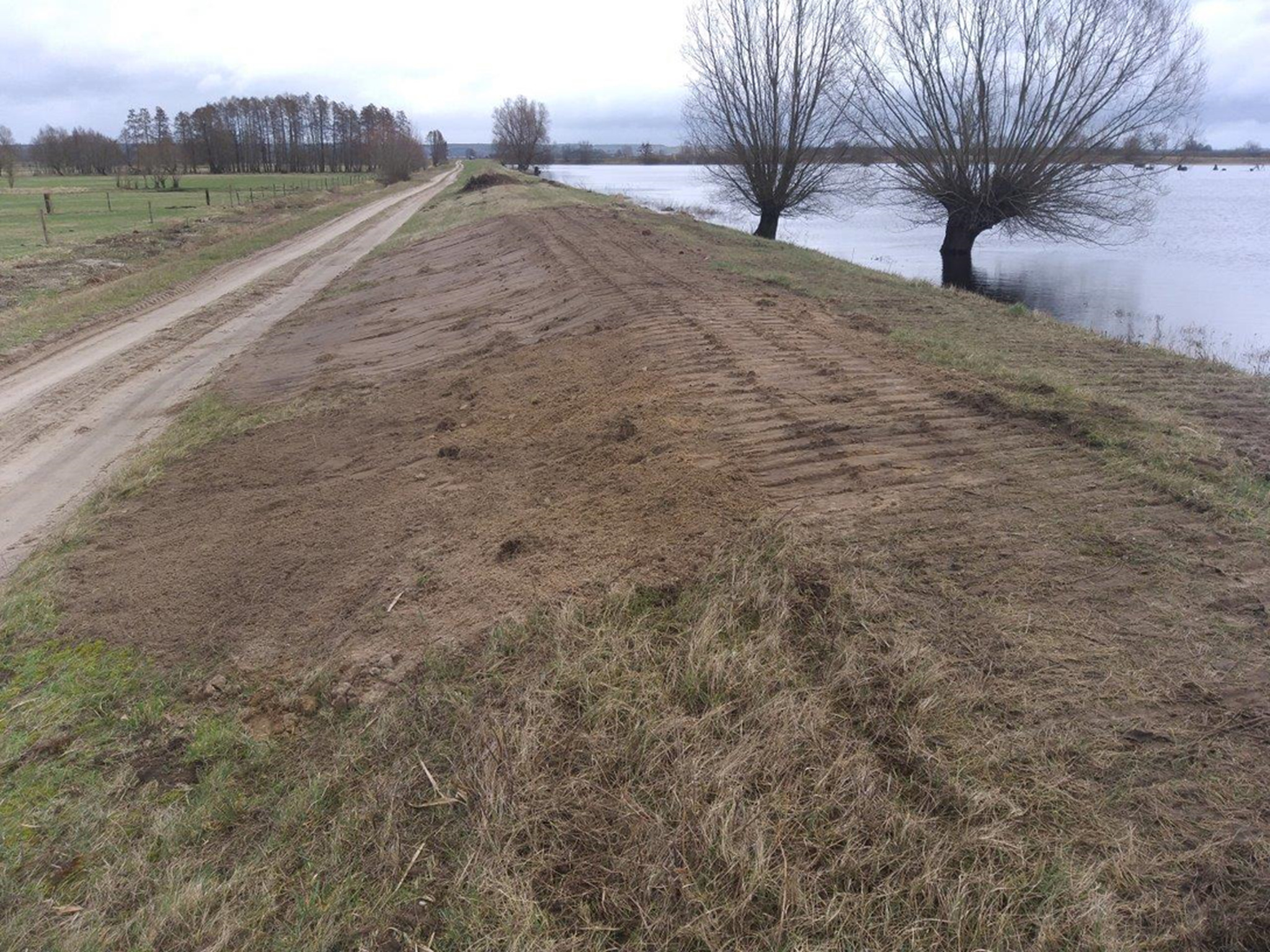 Nadal występują lokalne rozlewiska na pobliskich łąkach, woda znajduje się w międzywalu.