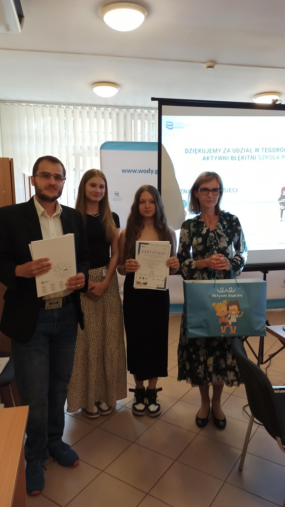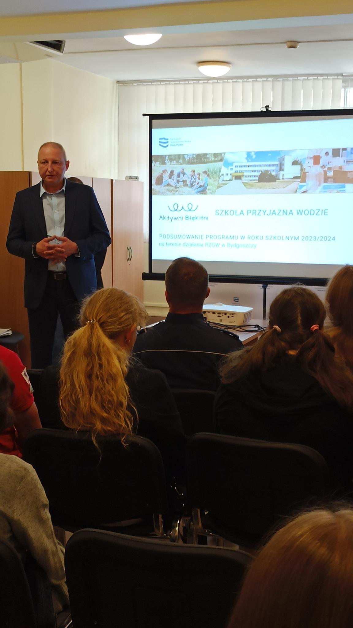 Zakończyliśmy IV edycję programu edukacyjnego Aktywni Błękitni Szkoła Przyjazna Wodzie. Certyfikaty otrzymało 10 szkół, ale tylko 3 najlepsze zdobyły nagrody. Wręczyliśmy je laureatom podczas uroczystego zakończenia w siedzibie RZGW w Bydgoszczy. Zebranych przywitał - Pan Piotr Kurnatowski - Dyrektor RZGW w Bydgoszczy, dziękując wszystkim za liczne przybycie. Zwrócił uwagę na zaangażowanie młodzieży w ten program oraz chęć współpracy edukacyjnej z Wodami Polskimi. Podziękował wszystkim uczestnikom Programu, Naszym Partnerom, Patronom za wspólną pracę na rzecz promowania edukacji wodnej i świadomości ekologicznej. Szczególne podziękowania skierował do Szkolnych Koordynatorów, ponieważ to dzięki ich zaangażowaniu możliwa była realizacja Programu.