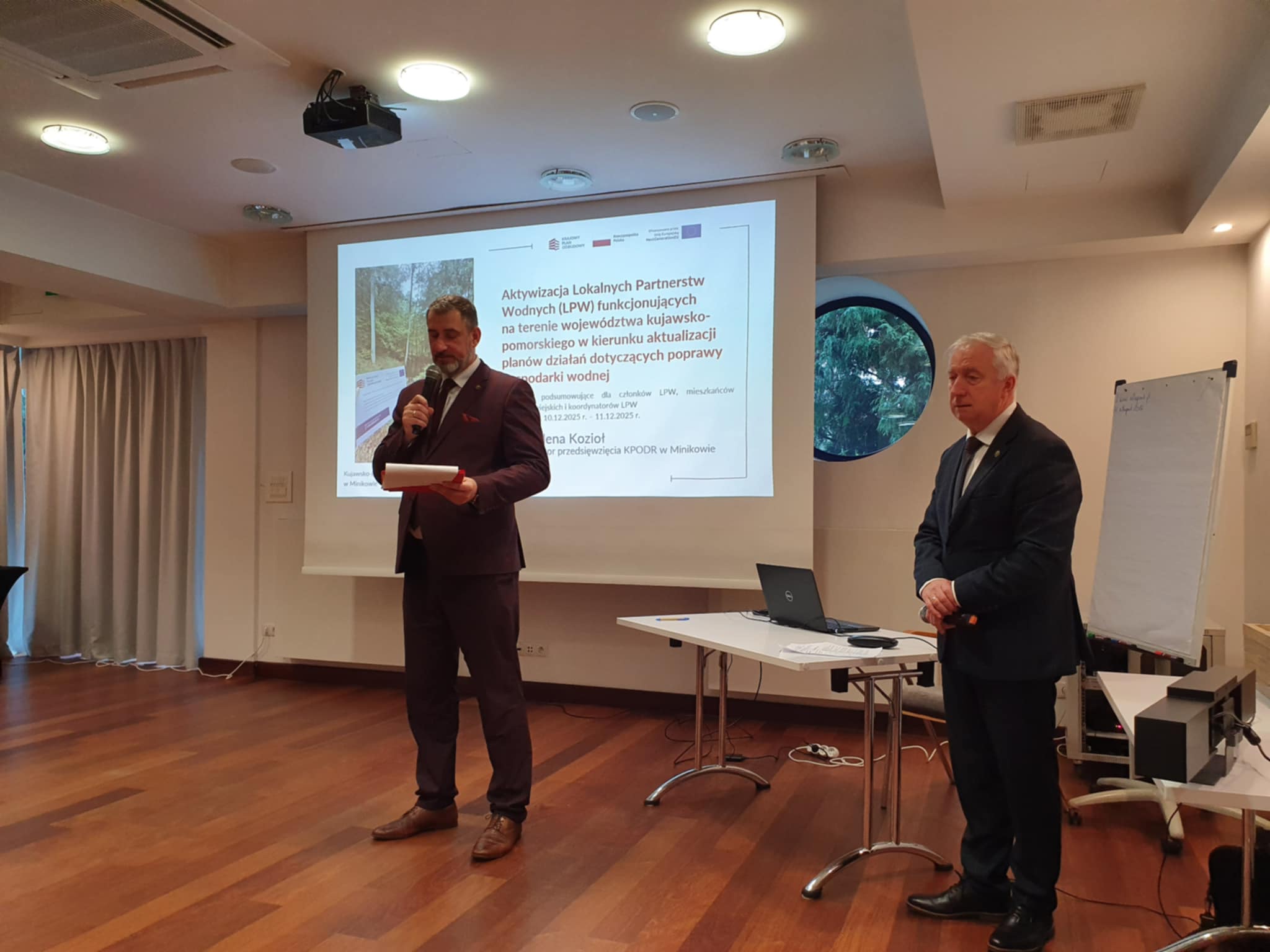 10 grudnia 2025 r. przedstawiciele RZGW w Bydgoszczy uczestniczyli w Warsztatach Szkoleniowych podsumowujących dla członków Lokalnych Partnerstw Wodnych, mieszkańców obszarów wiejskich oraz koordynatorów LPW z województwa kujawsko-pomorskiego.