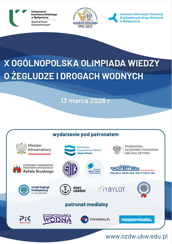 Ogólnopolska Olimpiada Wiedzy o Żegludze i Drogach Wodnych organizowana jest przez Katedrę Rewitalizacji Dróg Wodnych na Wydziale Nauk Geograficznych UKW. Konkurs skierowany jest do uczniów szkół średnich, których profil nauczania związany jest z żeglugą morską i śródlądową, hydrotechniką i melioracjami.