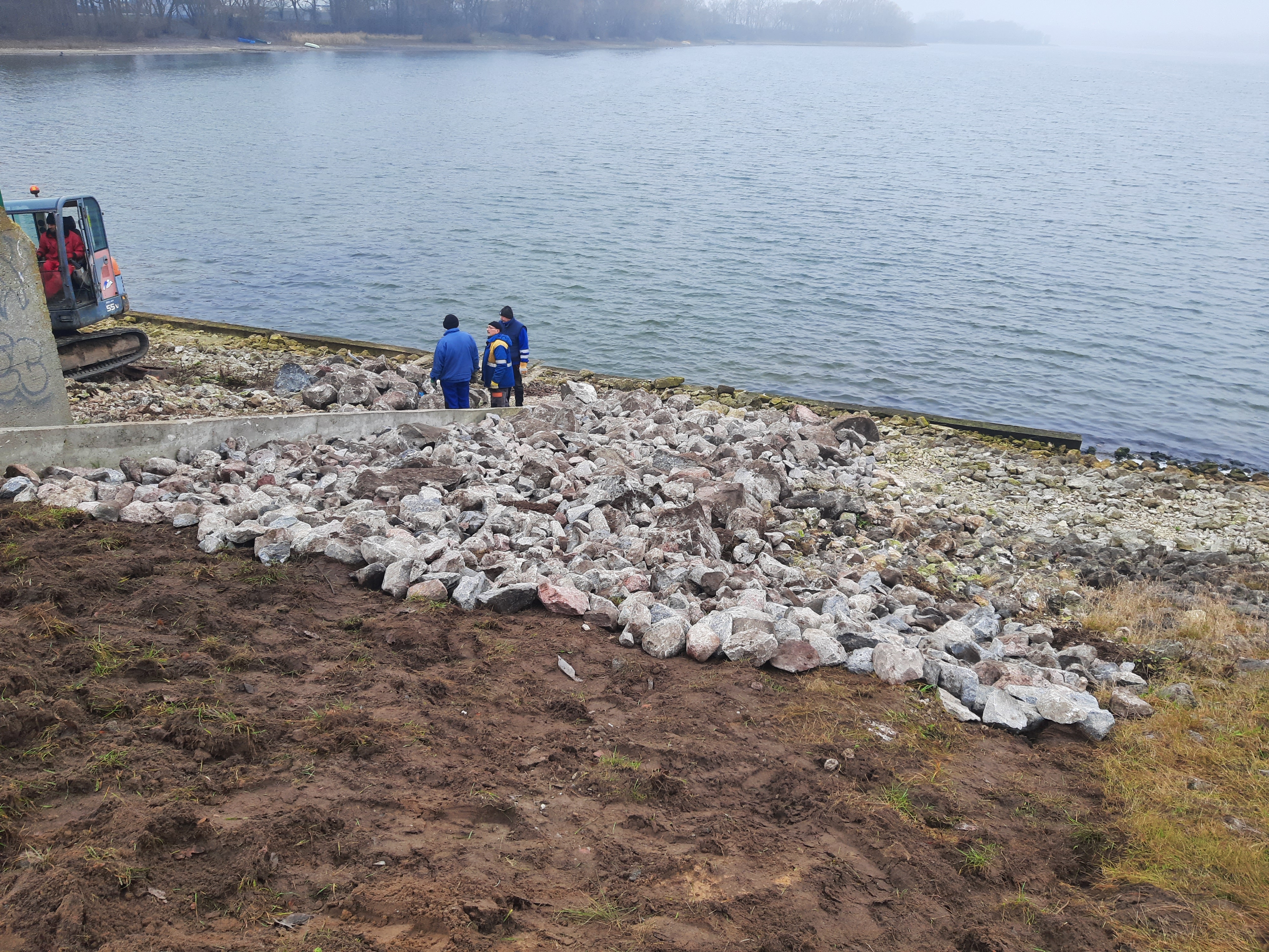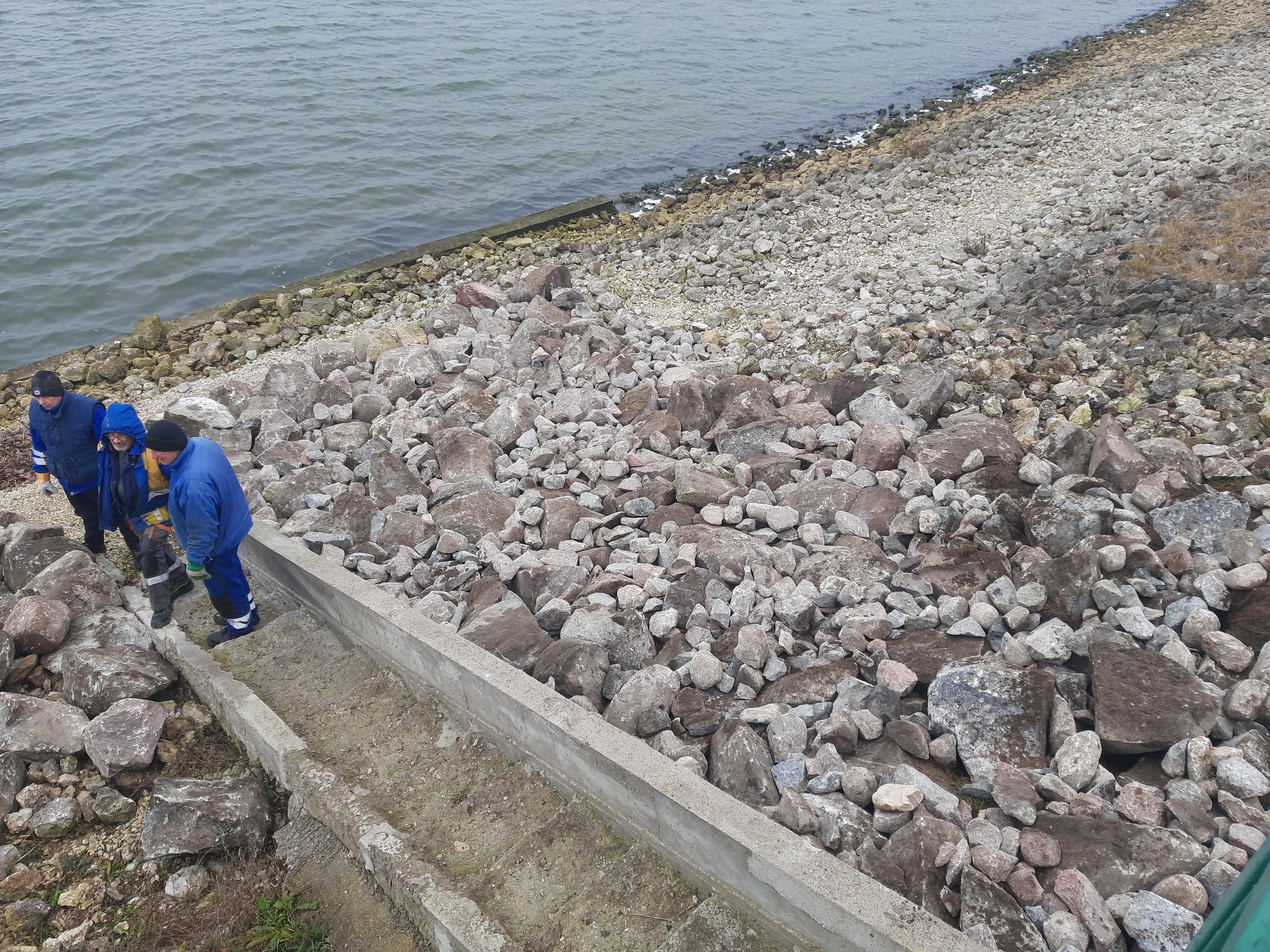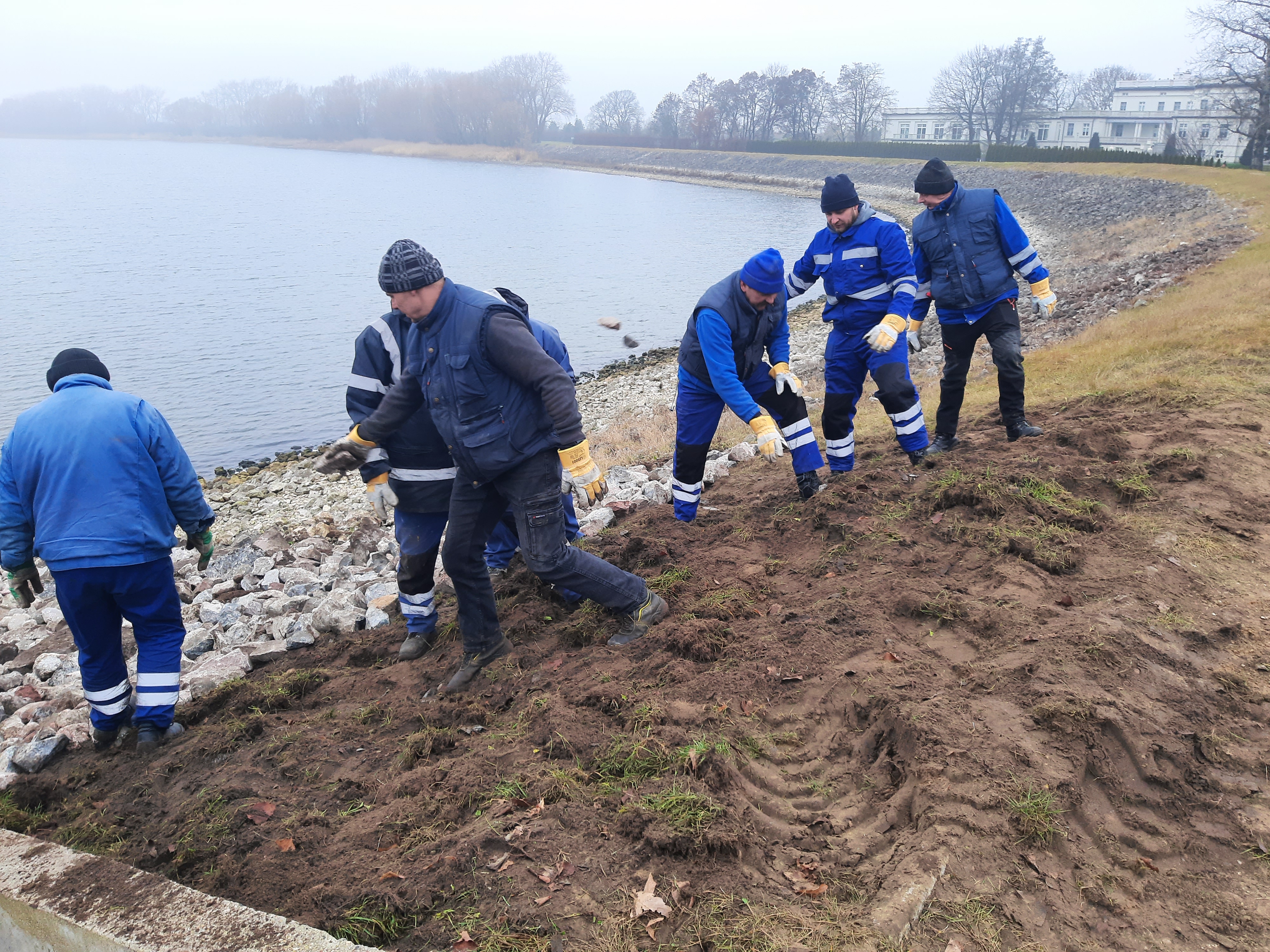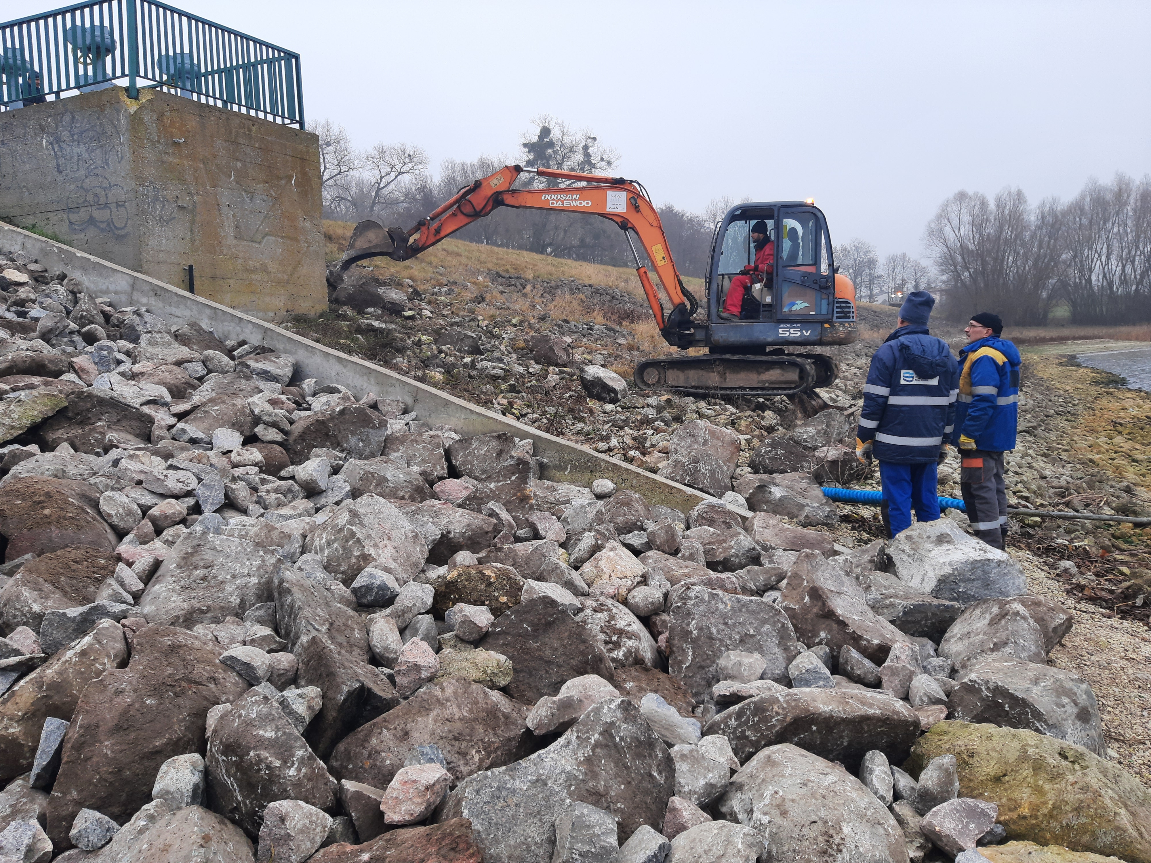 W ramach prac dostarczyliśmy 80 ton kamienia łamanego (tłucznia skalnego), który posłużył do uzupełnienia ubytków na zaporze bocznej oraz został odpowiednio rozłożony.