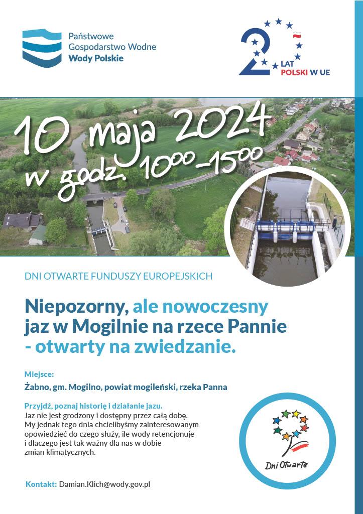 Dni Otwarte Funduszy Europejskich. Zapraszamy na zwiedzanie jazu w Mogilnie.