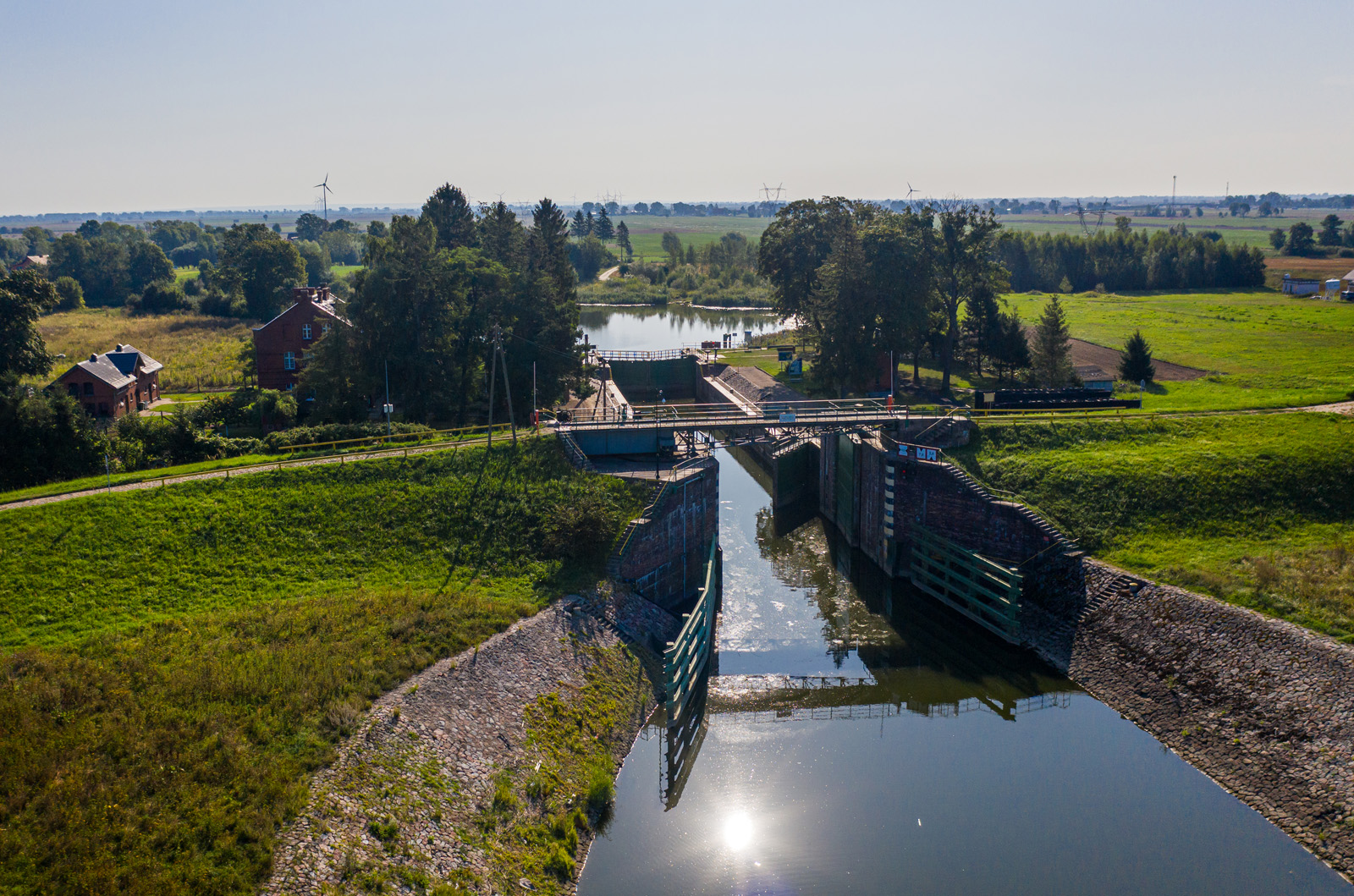 Zadaniem stopnia jest umożliwienie żeglugi rzeką Szkarpawą (od rz. Wisły do Zalewu Wiślanego) oraz ochrona terenów położonych nad Szkarpawą przed wielkimi wodami rzeki Wisły. Stopień został wybudowany w 1895r w ramach szerszego programu inwestycyjnego przebudowy ujścia Wisły (obejmującego m.in. wykonanie tzw. przekopu oraz odcięcie od Wisły tzw. Wisły Gdańskiej i Wisły Elbląskiej).