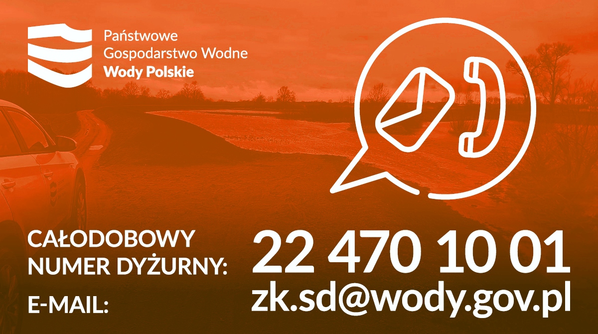 Wszelkie niepokojące zdarzenia można zgłaszać na całodobowy numer dyżurny Wód Polskich: 22 470 10 01.