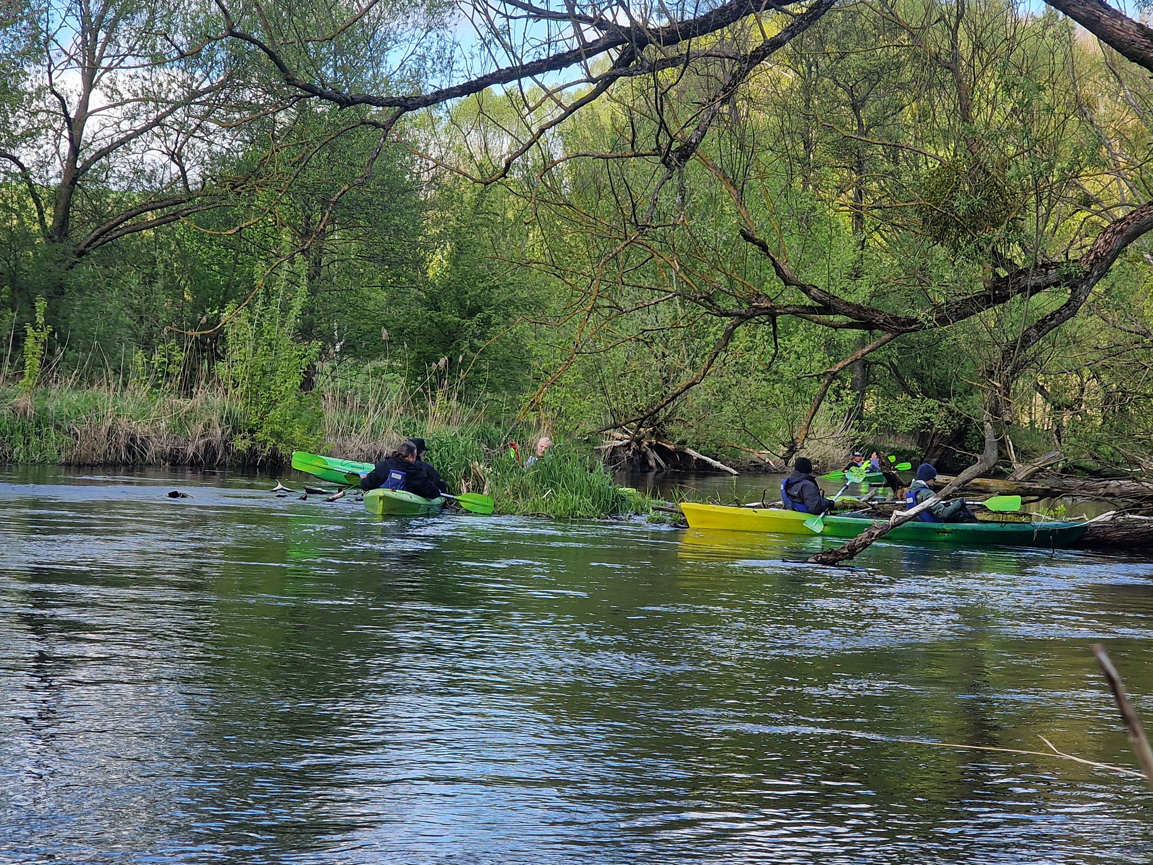 W kajakach zasiedli nie tylko pracownicy Wód Polskich, ale także Państwowej Straży Rybackiej w Olsztynie i Starostwa Powiatowego w Nowym Mieście Lubawskim oraz członkowie Społecznej Straży Rybackiej w Nowym Mieście Lubawskim.