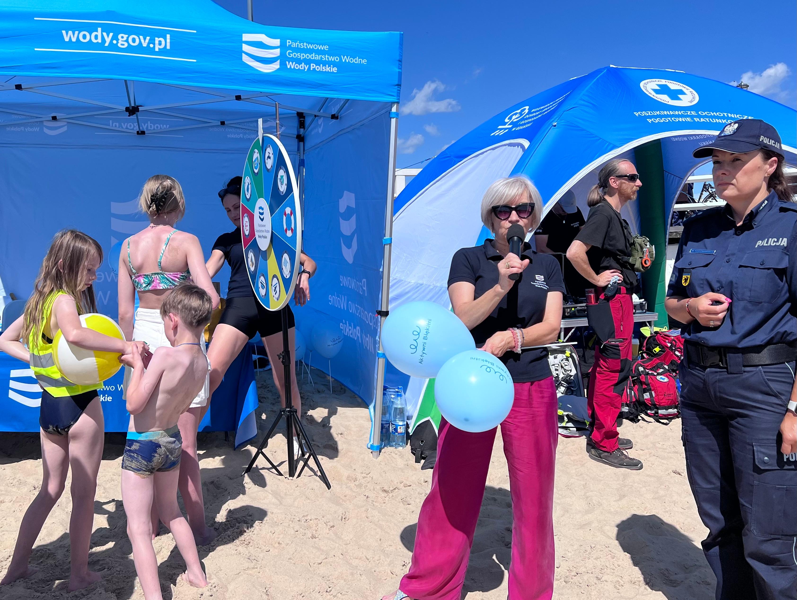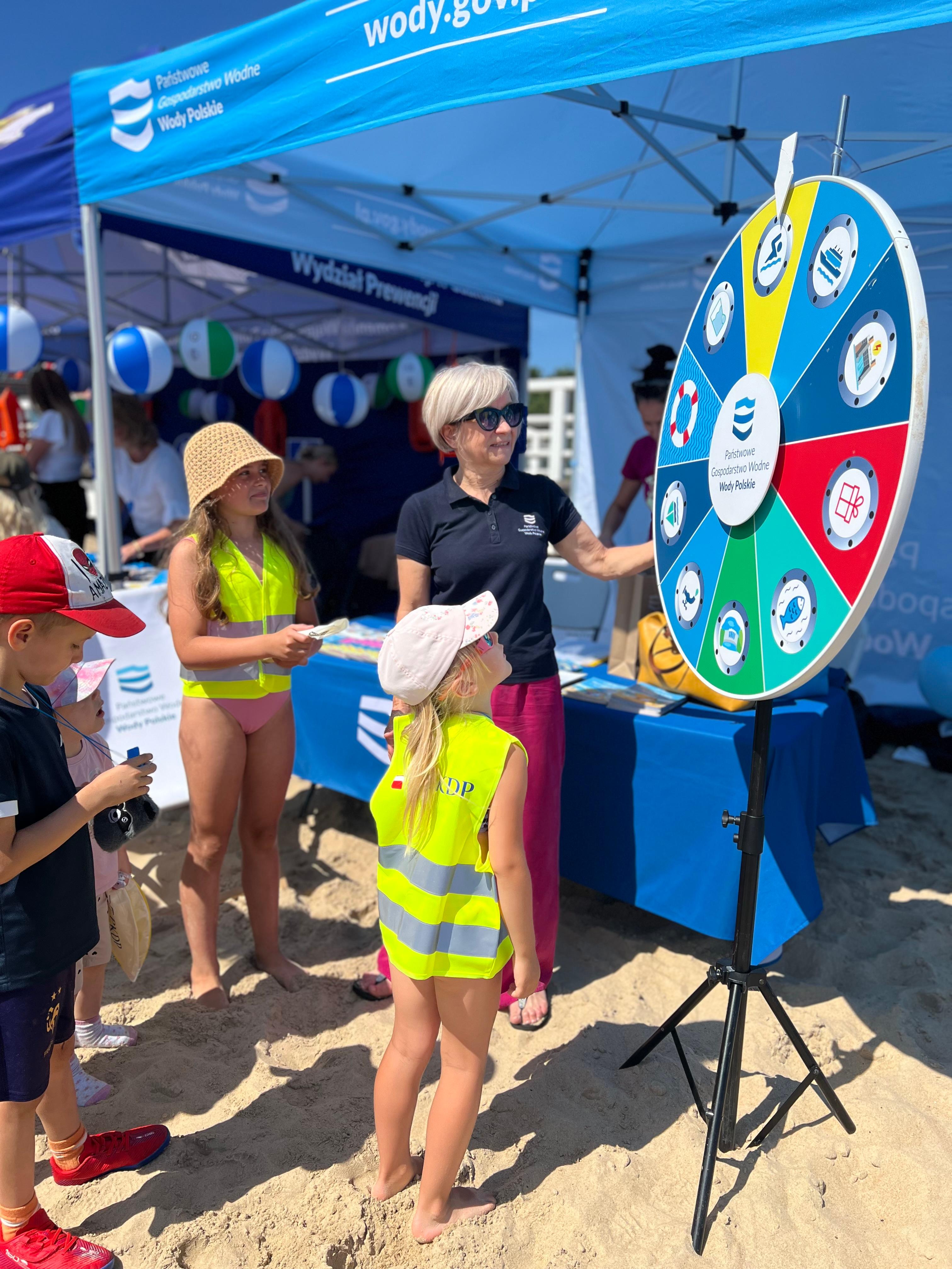 Pogoda dopisała. Dużo atrakcji, uśmiechów i dobrej zabawy. W sobotę 29 czerwca na plaży w Brzeźnie kręciliśmy wodnym kołem fortuny przypominając właściwe zachowania podczas odpoczynku nad wodą. Wspólnie z policjantami i ratownikami wodnymi powtórzyliśmy zasady udzielania pierwszej pomocy, bezpiecznej kąpieli i właściwego uprawiania sportów wodnych. Akcja informacyjno-edukacyjna „Kręci mnie bezpieczeństwo nad wodą” organizowana jest cyklicznie przez Wydział Prewencji Komendy Wojewódzkiej Policji w Gdańsku. Bezpośrednimi adresatami projektu są dzieci, młodzież, jak i osoby dorosłe, a pośrednio podmioty prowadzące działalność w zakresie rekreacji wodnej. Odpoczywajmy nad wodą bezpiecznie i odpowiedzialnie.