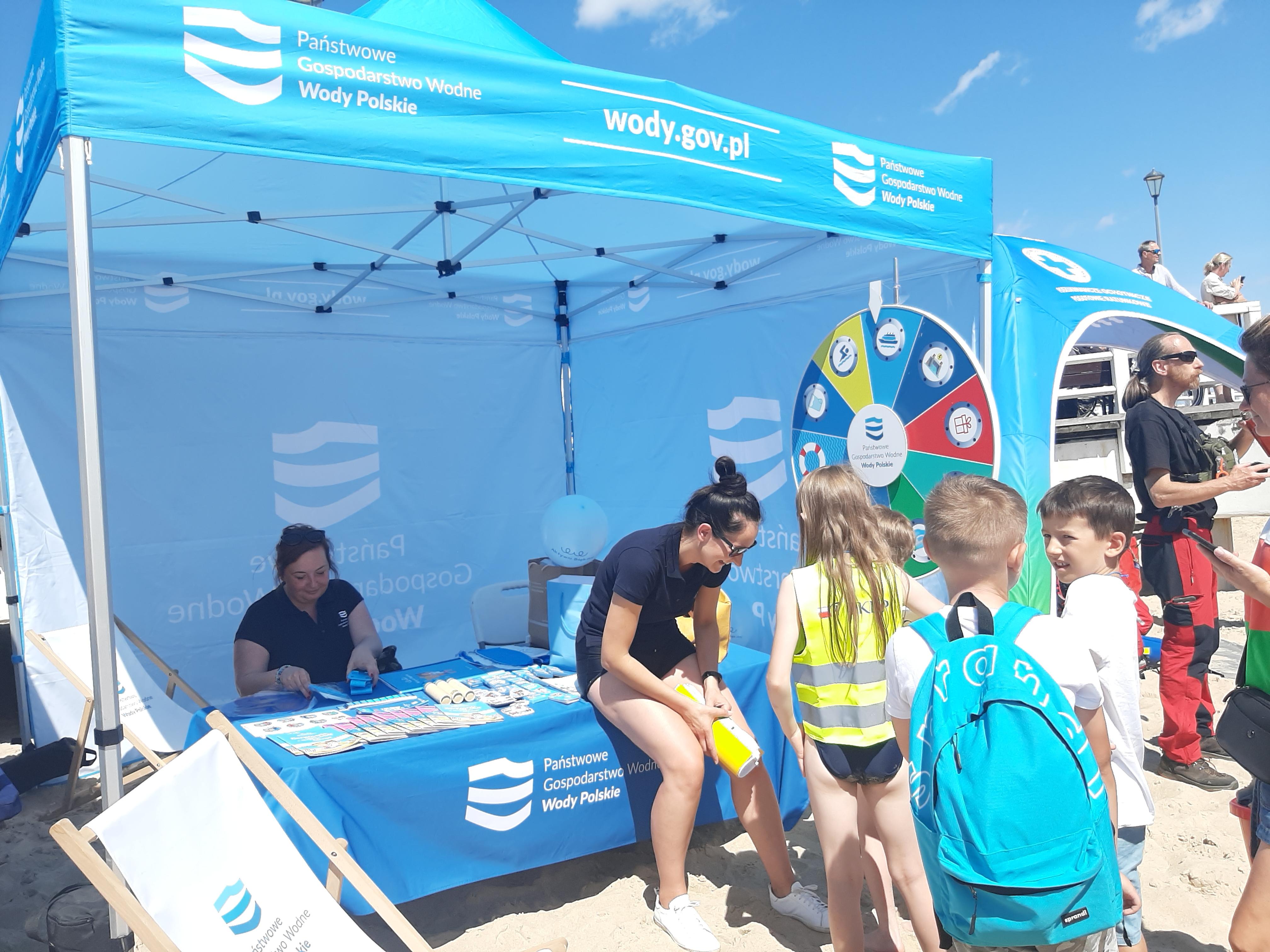 Stoisko Wód Polskich na festynie "Kręci mnie bezpieczeństwo nad wodą" organizowanym przez Pomorską Policję.