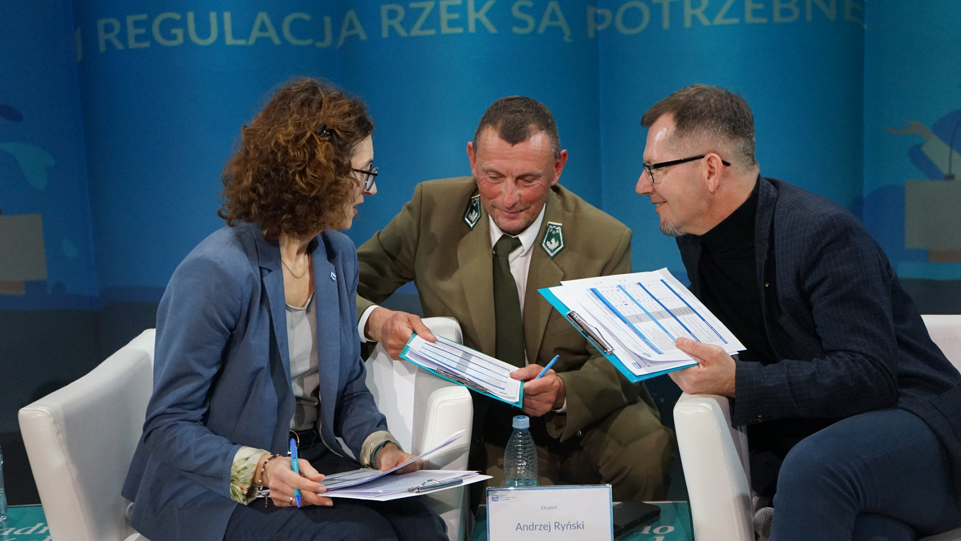 Uczestnicy wymieniali się argumentami próbując poprzeć lub obalić tezę: „W dobie zmian klimatu i renaturyzacja, i regulacja rzek są potrzebne”.