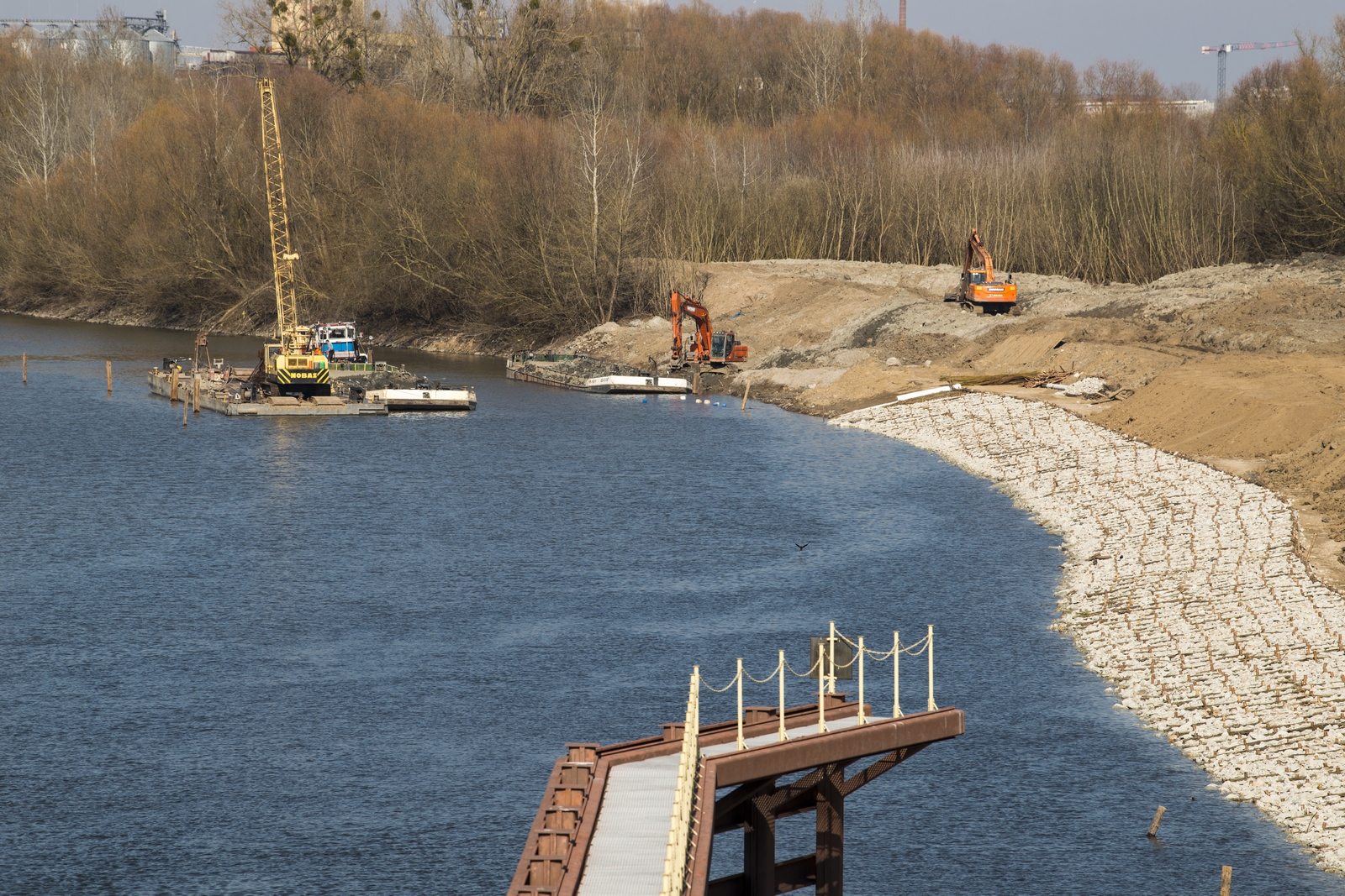 Przypomnijmy prace rozpoczęto w lipcu ubiegłego roku. Całość zadania inwestycyjnego obejmuje wykonanie robót budowlanych czyli umocnienia skarp awanportu dolnego na odcinkach występujących osuwisk oraz wykonanie nabrzeża cumowniczego na prawym brzegu toru regatowego oraz pełnienie nadzoru autorskiego.