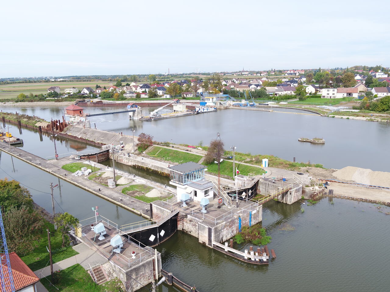 Informacje dotyczące realizowanego Projektu „Modernizacja jazów odrzańskich na odcinku w zarządzie RZGW Gliwice - woj. opolskie (etap II)”, obejmującego przebudowę jazów sektorowych na jazy klapowe na stopniach wodnych w Krępie, Groszowicach, Dobrzeniu.