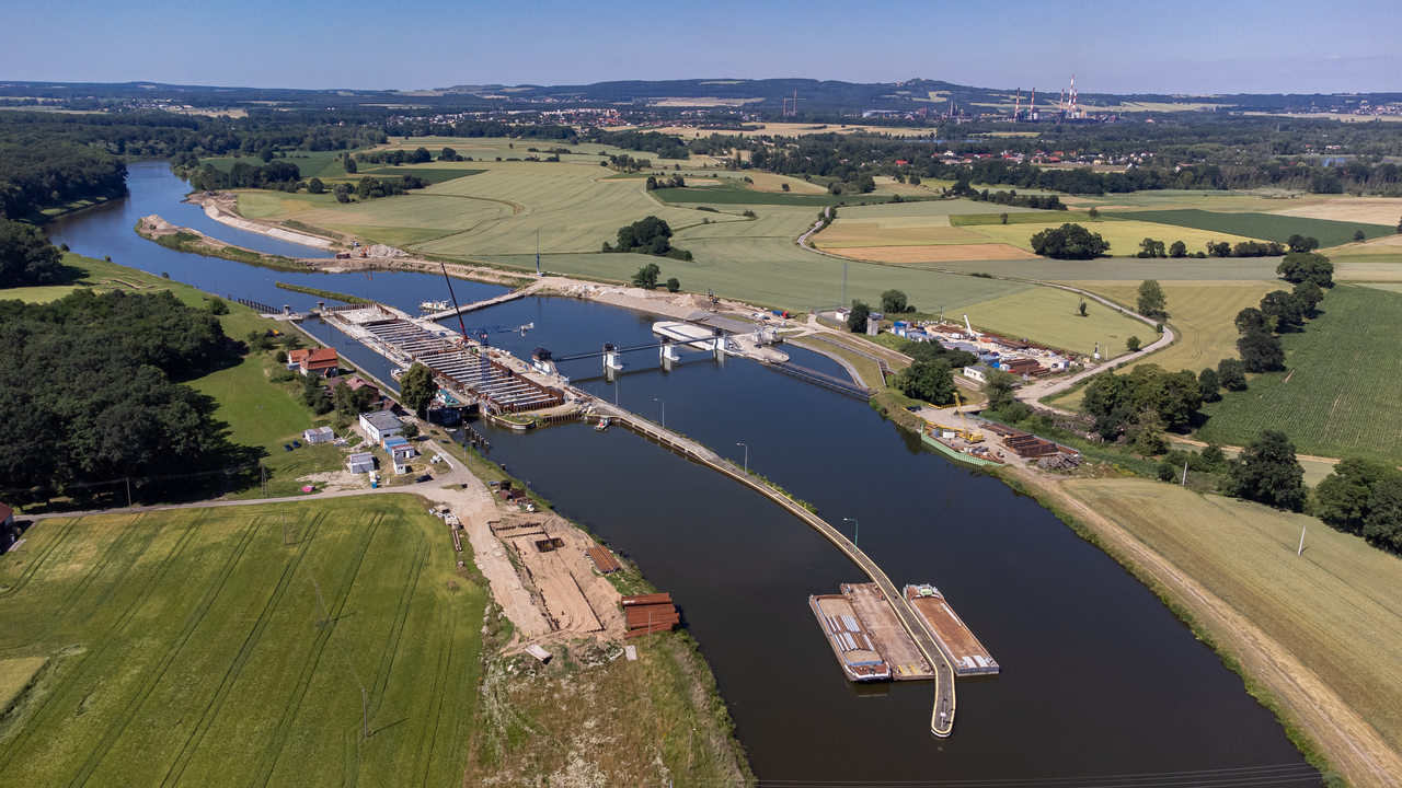 - przebudowa istniejącej śluzy małej poprzez jej częściową rozbiórkę i budowę w jej miejscu śluzy o parametrach 190m długości użytkowej i 12m szerokości użytkowej wraz z wyposażeniem technicznym, mechanicznym i hydraulicznym