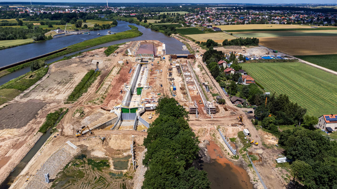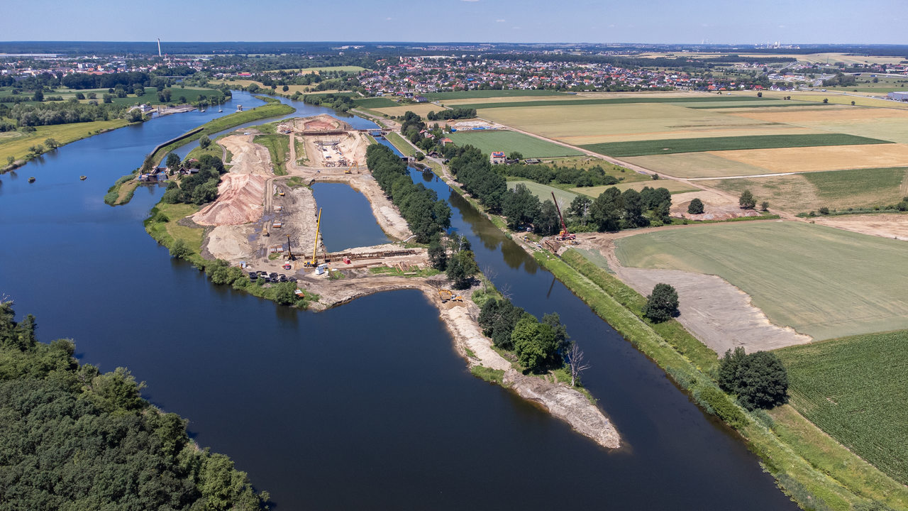 - wykonanie grodzy ziemnej z przesłoną dla budowy nowej śluzy o wymiarach 190 x 12 m,