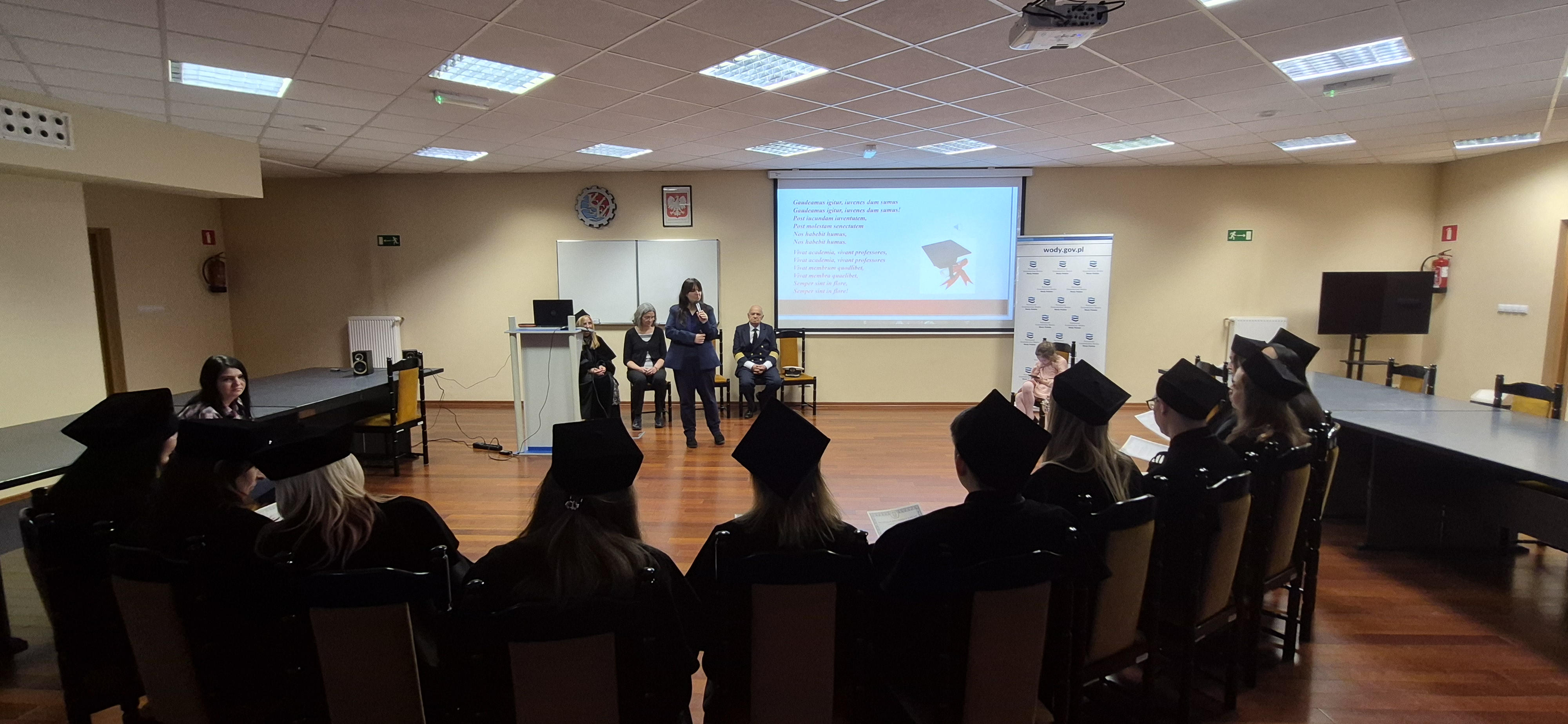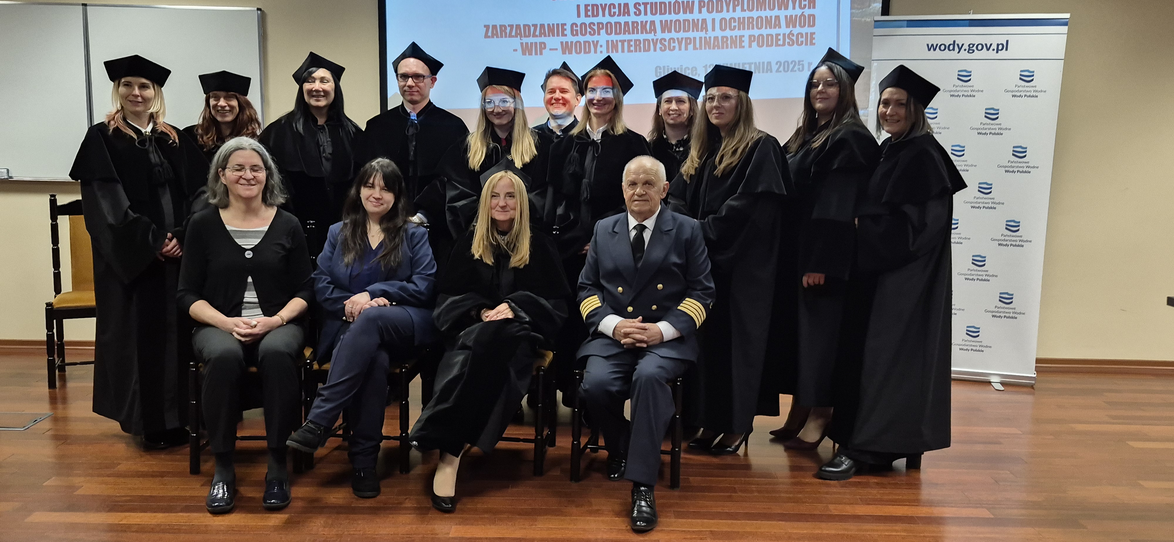 W trakcie dwóch semestrów nauki grupa studentów zgłębiała zagadnienia prawa wodnego, gospodarowania zasobami wodnymi, zarządzania zasobami wód powierzchniowych, uwarunkowań prawno-ekonomicznych ustalania taryf, podstawy budownictwa wodnego, zarządzania ryzykiem obiektów technicznych, a także adaptacje do zmian klimatu. Zwieńczeniem było uroczyste wręczenie dyplomów ukończenia studiów, które odbyło się w sobotę 12 kwietnia 2025 roku w budynku Wydziału Inżynierii Środowiska i Energetyki, znajdującym się przy ul. Konarskiego 18 w Gliwicach.