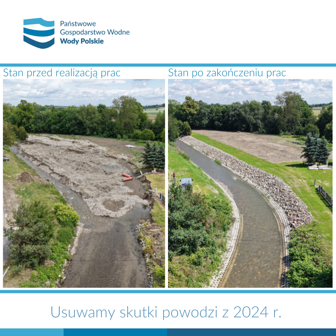 Rozpoczął się tryb odbiorowy, zleconych w ciągu bieżącego roku prac, polegających na usuwaniu skutków ubiegłorocznej powodzi z września 2024r. Oznacza to, że wykonawcy zadań w obrębie rzek, potoków, budowli hydrotechnicznych czy urządzeń kończą właśnie prace. Tym samym w lokalizacjach objętych poszczególnymi zadaniami przywrócono stan sprzed powodzi, a wraz z nim bezpieczeństwo mieszkańców na terenach przyległych.