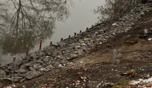- odtwarzanie koryt rzek (np. przez zasypywanie wyrw czy uzupełnianie ubytków skarp i dna cieków w miejscach stanowiących zagrożenie dla mieszkańców lub infrastruktury)