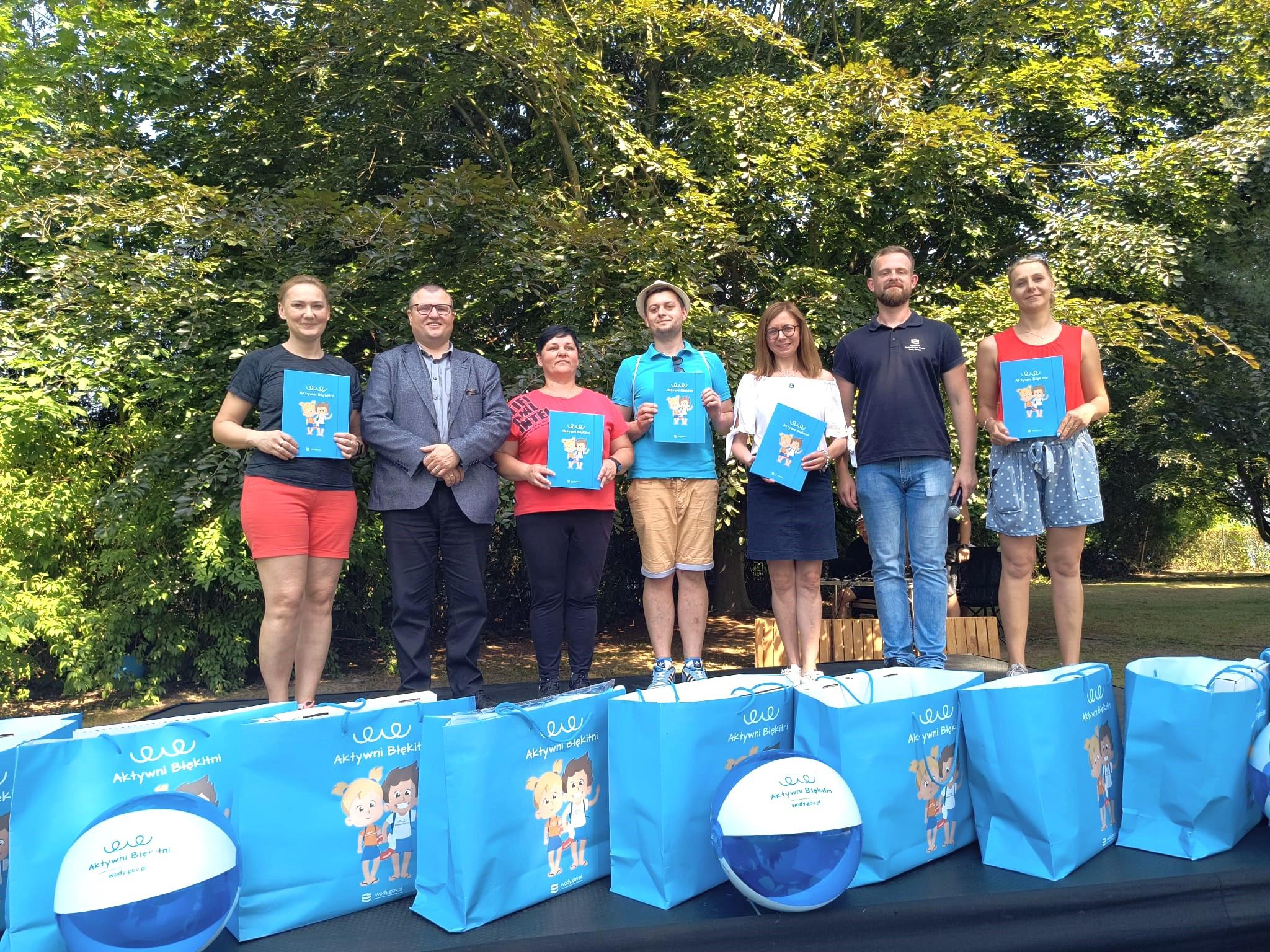 Podczas pikniku nauczyciele - koordynatorzy wyróżnionych szkół otrzymali wartościowe zestawy pomocy naukowych oraz certyfikaty uczestnictwa w programie, które wręczył pan Marcin Jarzyński – Dyrektor Wód Polskich w Gliwicach. Następnie pogratulował wszystkim uczestnikom: