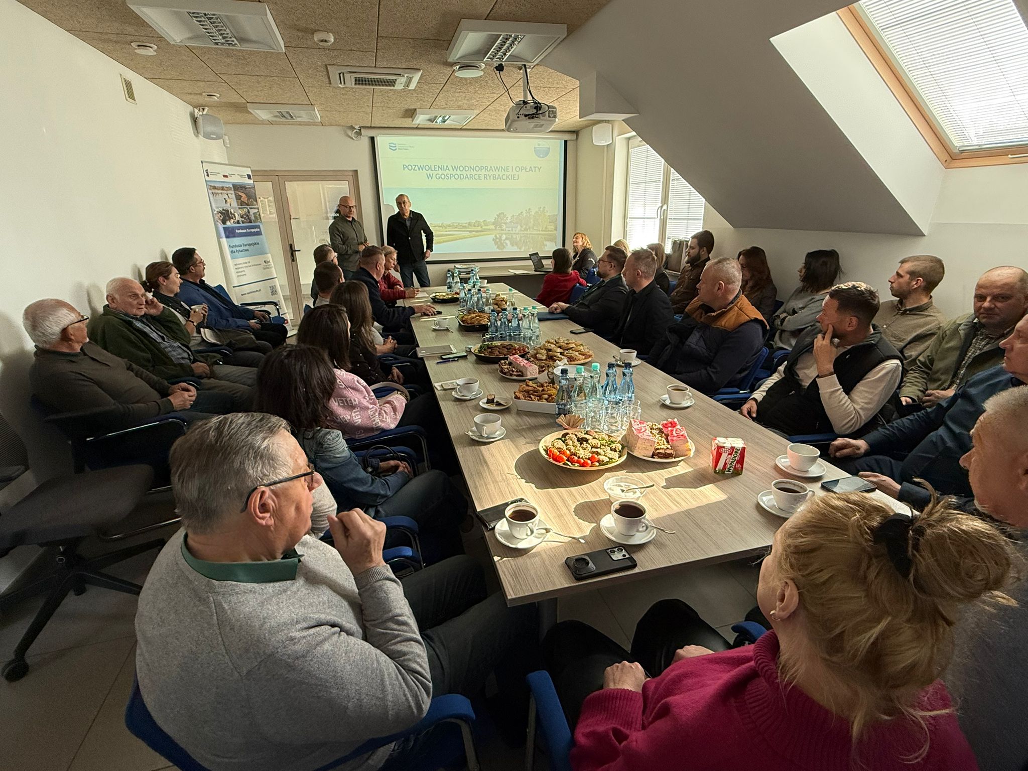 10 kwietnia 2026 r. w siedzibie Państwowego Gospodarstwa Leśnego Lasy Państwowe – Gospodarstwo Rybackie Niemodlin odbyło się spotkanie branżowe zorganizowane przez Grupę Rybacką „Opolszczyzna”. Wydarzenie zgromadziło przedstawicieli kluczowych instytucji administracji publicznej, instytucji finansujących oraz reprezentantów gospodarstw rybackich z regionu Opolszczyzny. Wszystko po to, by budować wzajemne zrozumienie użytkowników wód oraz przekazywać wiedzę z zakresu gospodarowania wodami, a przede wszystkim – pozwoleń wodnoprawnych. Spotkanie otworzył prezes Grupy Rybackiej „Opolszczyzna” – pan Jakub Roszuk.