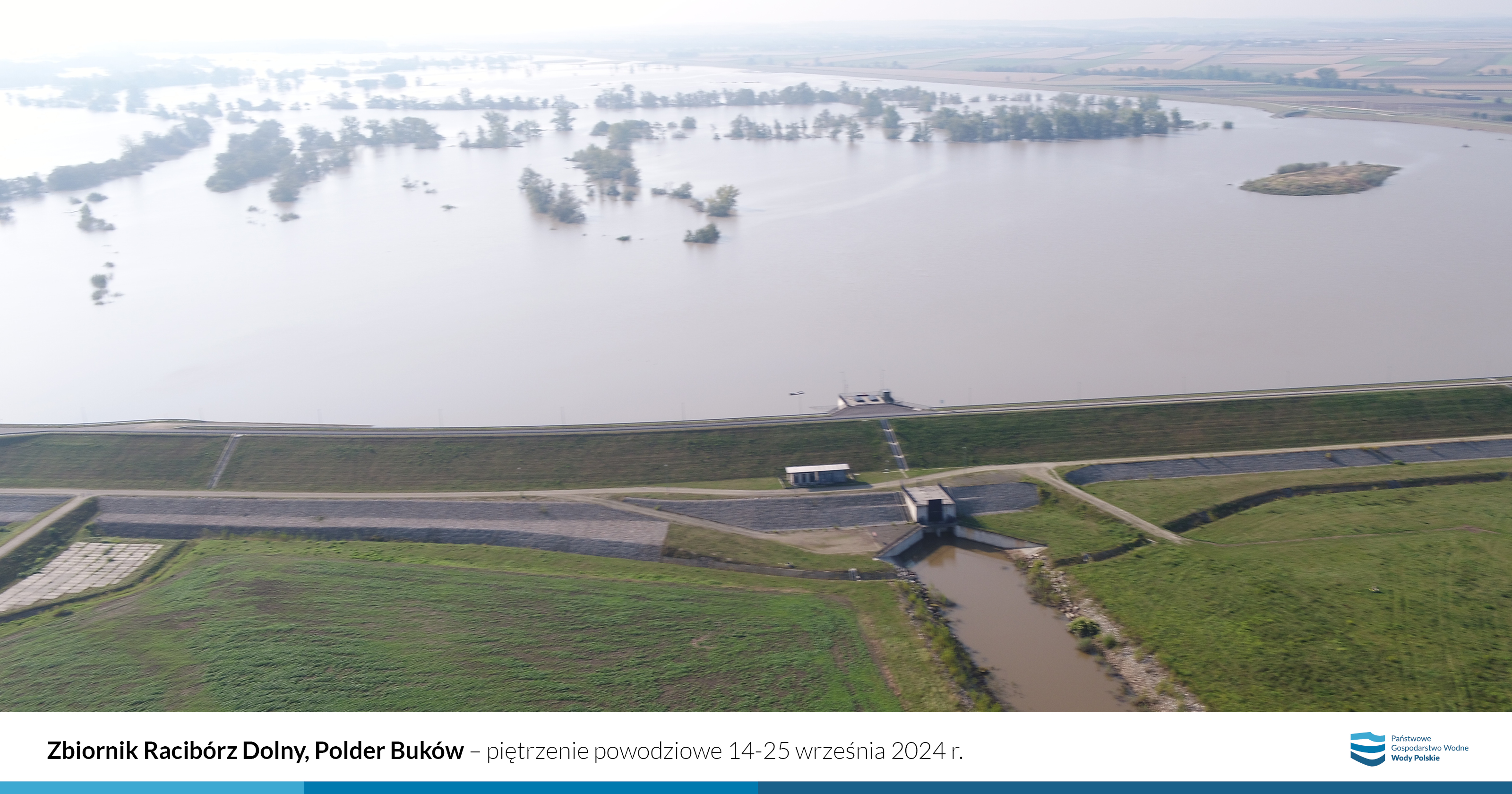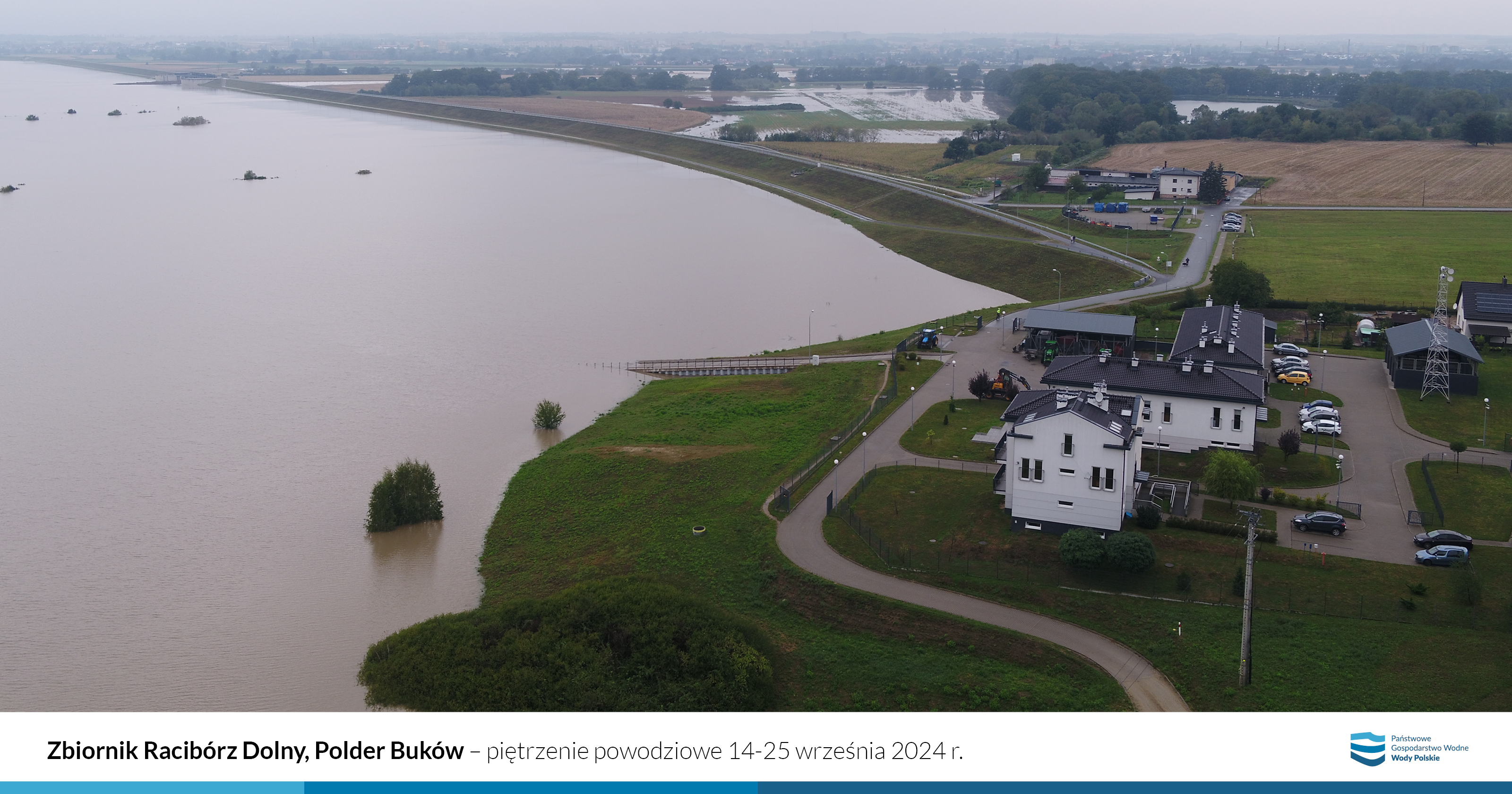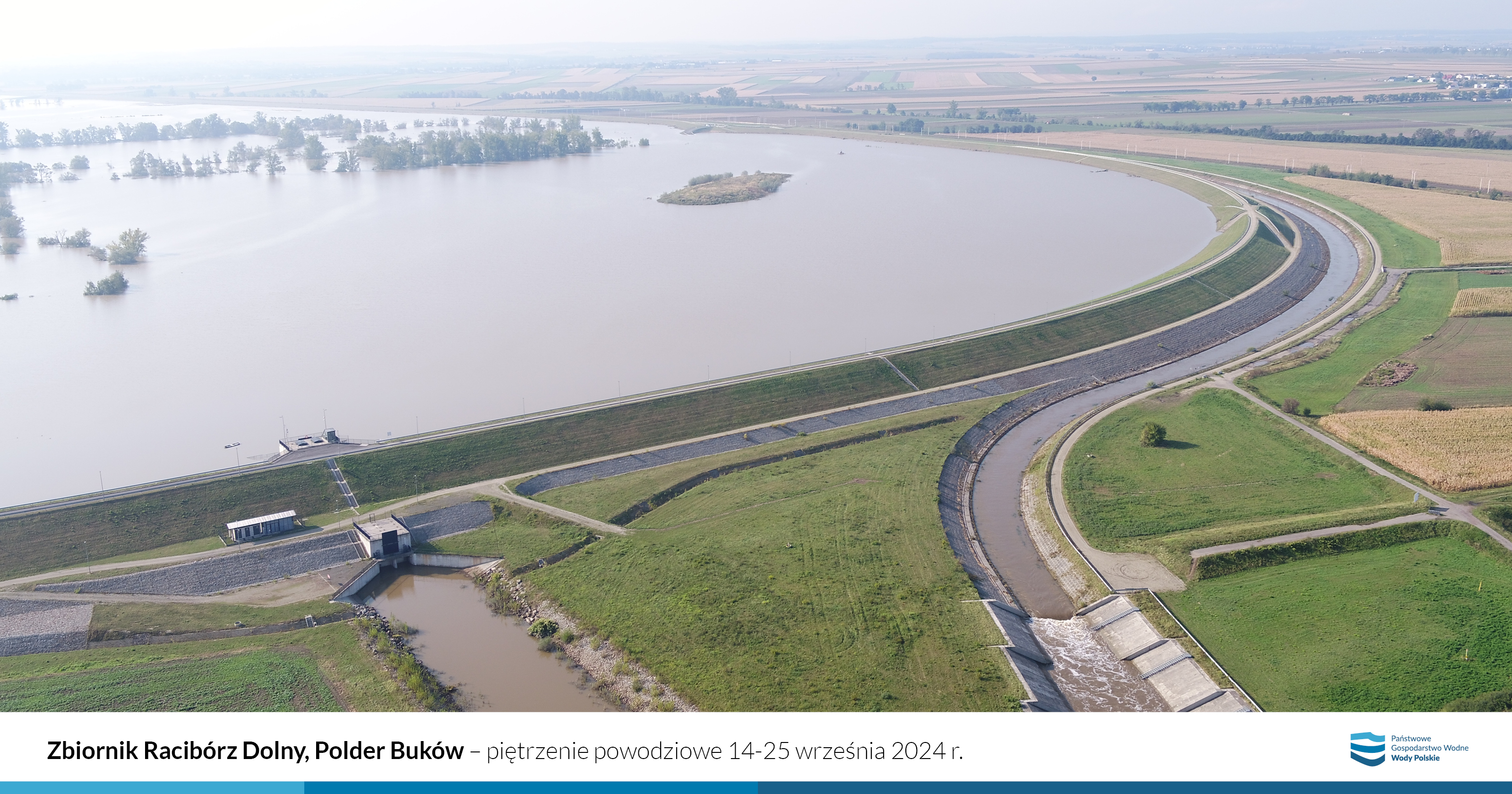 W niedzielę 15 września 2024 r. około godziny 4:20 Zbiornik Racibórz Dolny rozpoczął piętrzenie wezbranych wód rzeki Odry, przechwytując falę powodziową i jednocześnie ją spłaszczając. O uruchomieniu obiektu zadecydował zespół wskazany w Instrukcji Gospodarowania Wodą. Zasuwy Budowli Przelewowo-Spustowej zbiornika zostały opuszczone gdy posterunek wodowskazowy Krzyżanowice w zlewni Górnej Odry wskazywał rzędną ok. 690 cm przy przepływie ok. 750 m3/s. Równocześnie swoją pracę rozpoczął Polder Buków stanowiący pobliskie wsparcie dla zbiornika Racibórz. Przez cały czas zespół specjalistów nadzorował prawidłowe działanie obydwu obiektów hydrotechnicznych.