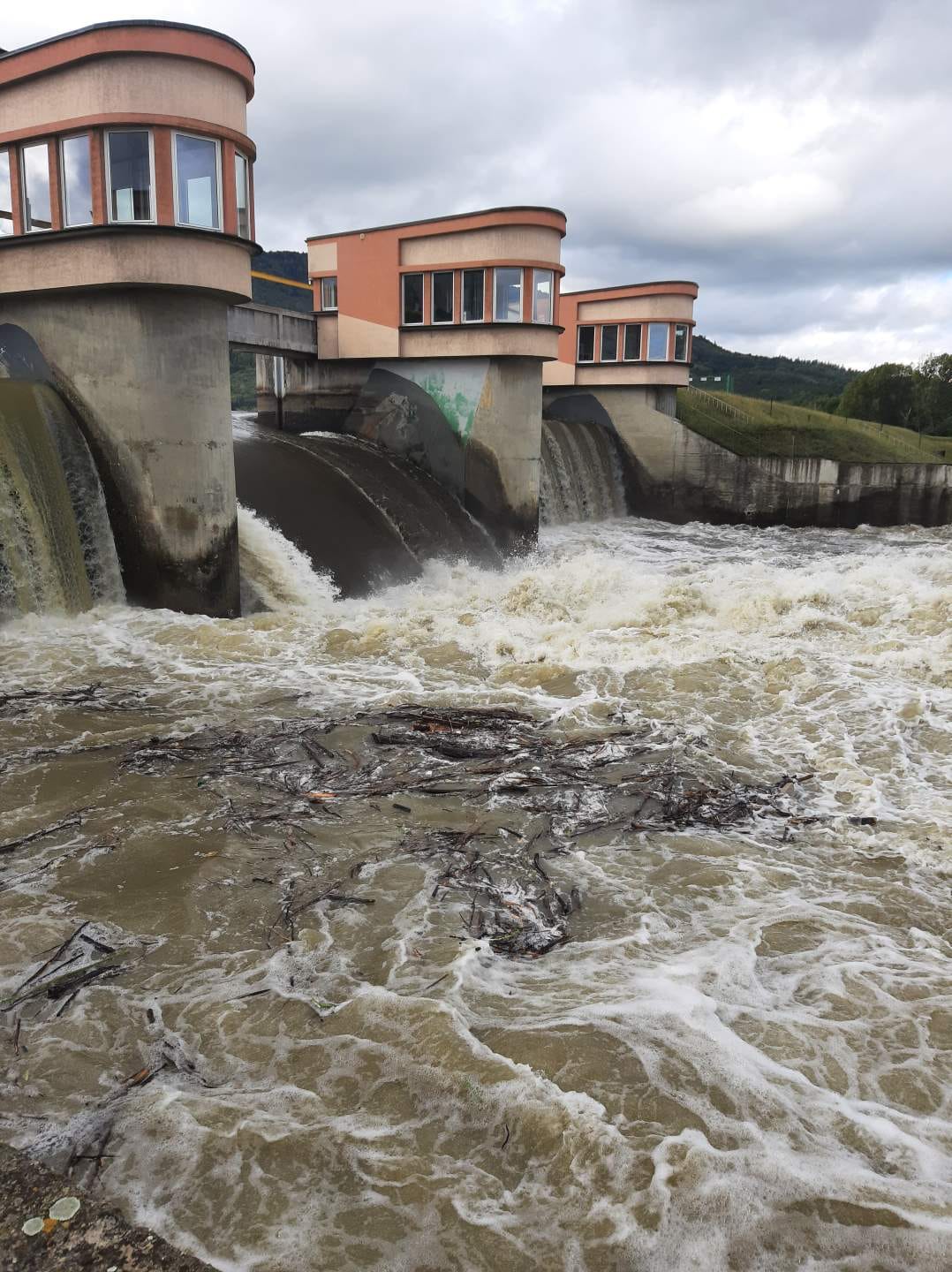 z wyjątkiem ZW Porąbka, którego pojemność powodziowa wynosi 89%. Odpływ chwilowy ze ZW Czaniec od godz. 9:30 został zwiększony do 140 m3/s. Obserwowano zwiększone dopływy do zbiorników retencyjnych: dopływ z godz. 8 do ZW Tresna wyniósł 340 m3/s, do Świnnej Poręby 160 m3/s, do Dobczyc 56 m3/s.
