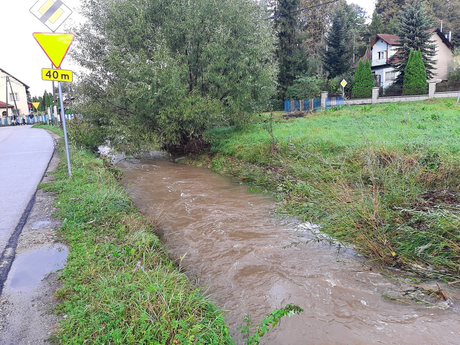 - Rzeka Stryszawka w m. Sucha Beskidzka – stan alarmowy przekroczony o 48 cm, trend rosnący