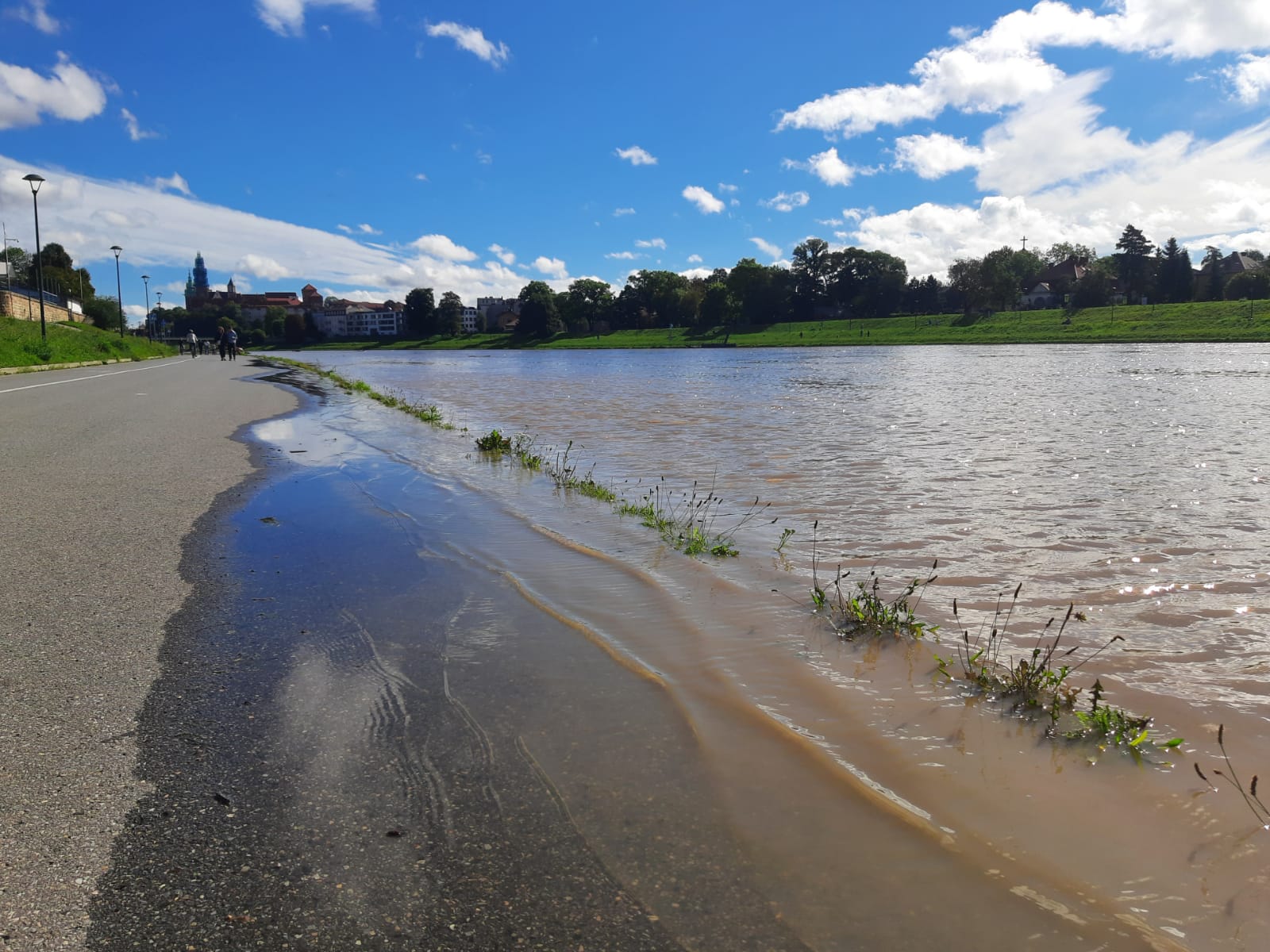 W związku ze spływem wód opadowych obserwuje się przemieszczanie fali wezbraniowej po Wiśle, której kulminacja znajduje się poniżej Krakowa. Na całej jej administrowanej długości występują stany wysokie oraz punktowo ostrzegawcze (Pustynia). Nie stwierdzono już stanów alarmowych.