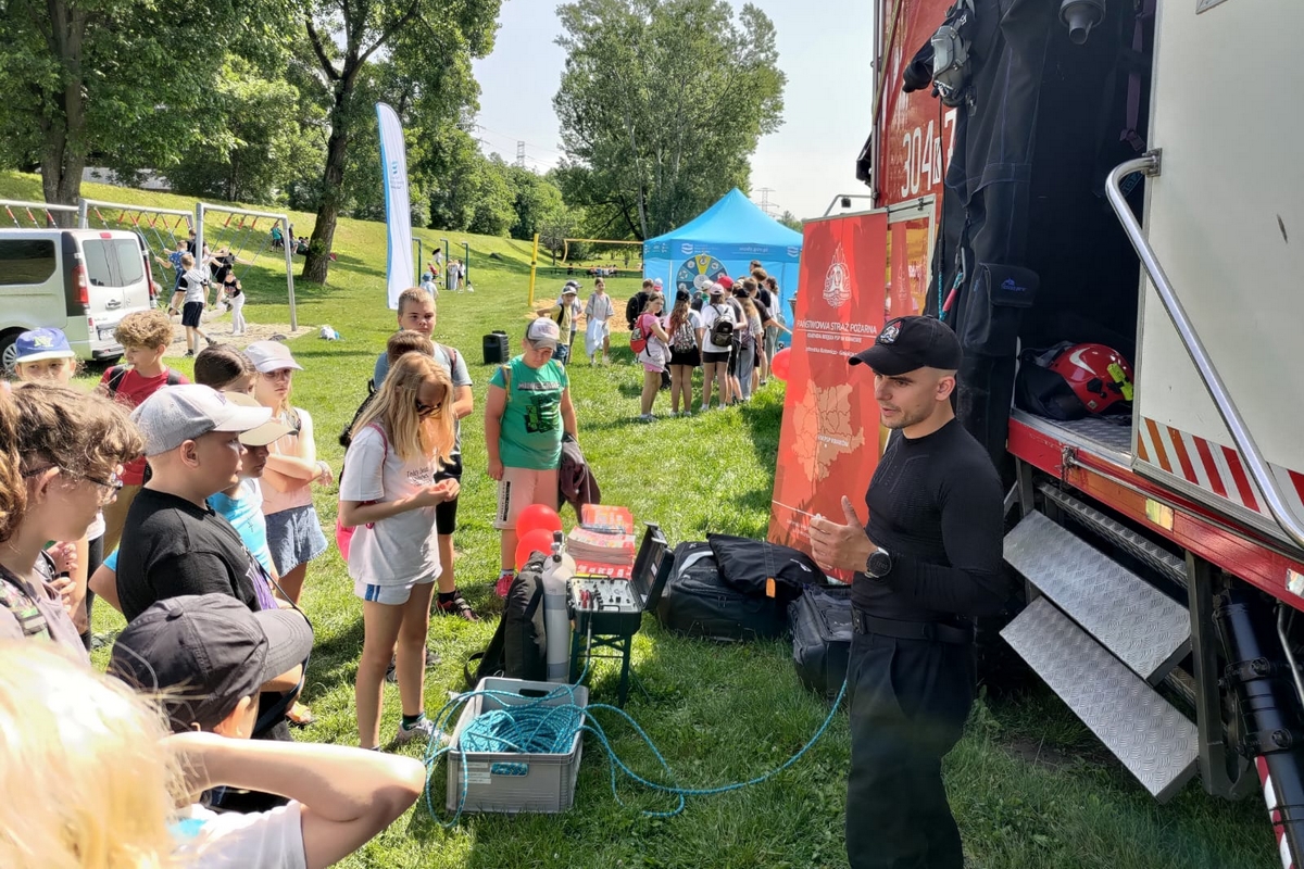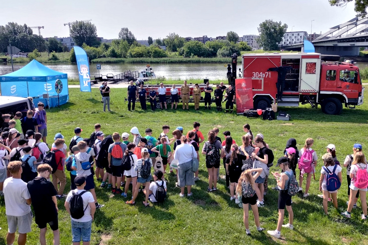 III edycja Aktywnych Błękitnych w RZGW Kraków zakończona. Aktywni Błękitni to ci, którzy pokazują swoją prawdziwą miłość do wody! Najbardziej aktywni z aktywnych w roku szkolnym 2024/2025 zostali zaproszeni do udziału w naszym wielkim finale w Krakowie. Na Bulwarze Kurlandzkim nasi partnerzy: Komenda Wojewódzka Policji w Krakowie i Komenda Wojewódzka Państwowej Straży Pożarnej w Krakowie zorganizowali pokazy, których przewodnim tematem było bezpieczeństwo nad wodą, a RZGW w Krakowie konkurs koła fortuny z nagrodami.