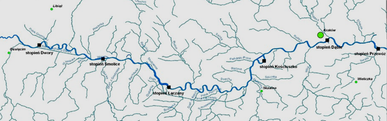 - od stopnia wodnego „Przewóz” w Krakowie do rzeki Sanny dł.203 km klasa drogi wodnej Ib.