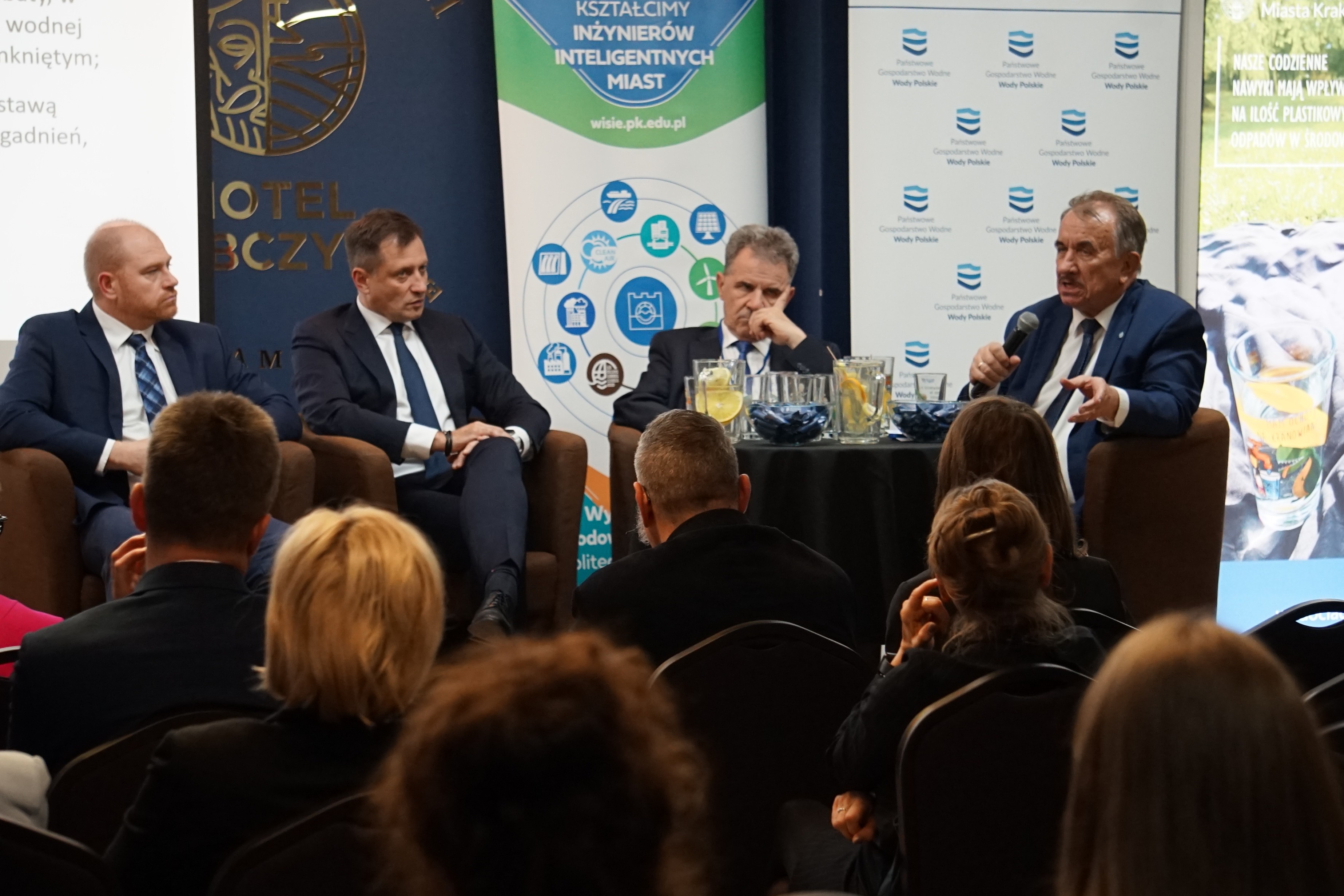 Dodatkowo paneliści poruszali kwestie zaopatrzenia w wodę i gospodarowania wodami opadowymi w mieście Krakowie, jak również odnieśli się do kwestii technologicznych, ukierunkowanych na wielorodzajowe wykorzystanie wód.