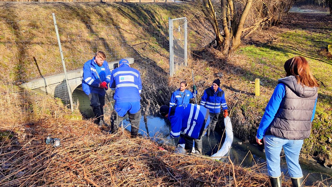 Grupa Wsparcia Technicznego właśnie zamontowała 2 łapacze - rękawy sorpcyjne na potoku Olszanickim. Urządzenia zostały zamontowane w miejscu zrzutu zanieczyszczeń z płyty lotniska. To kolejny ciek, gdzie RZGW w Krakowie montuje łapacze.