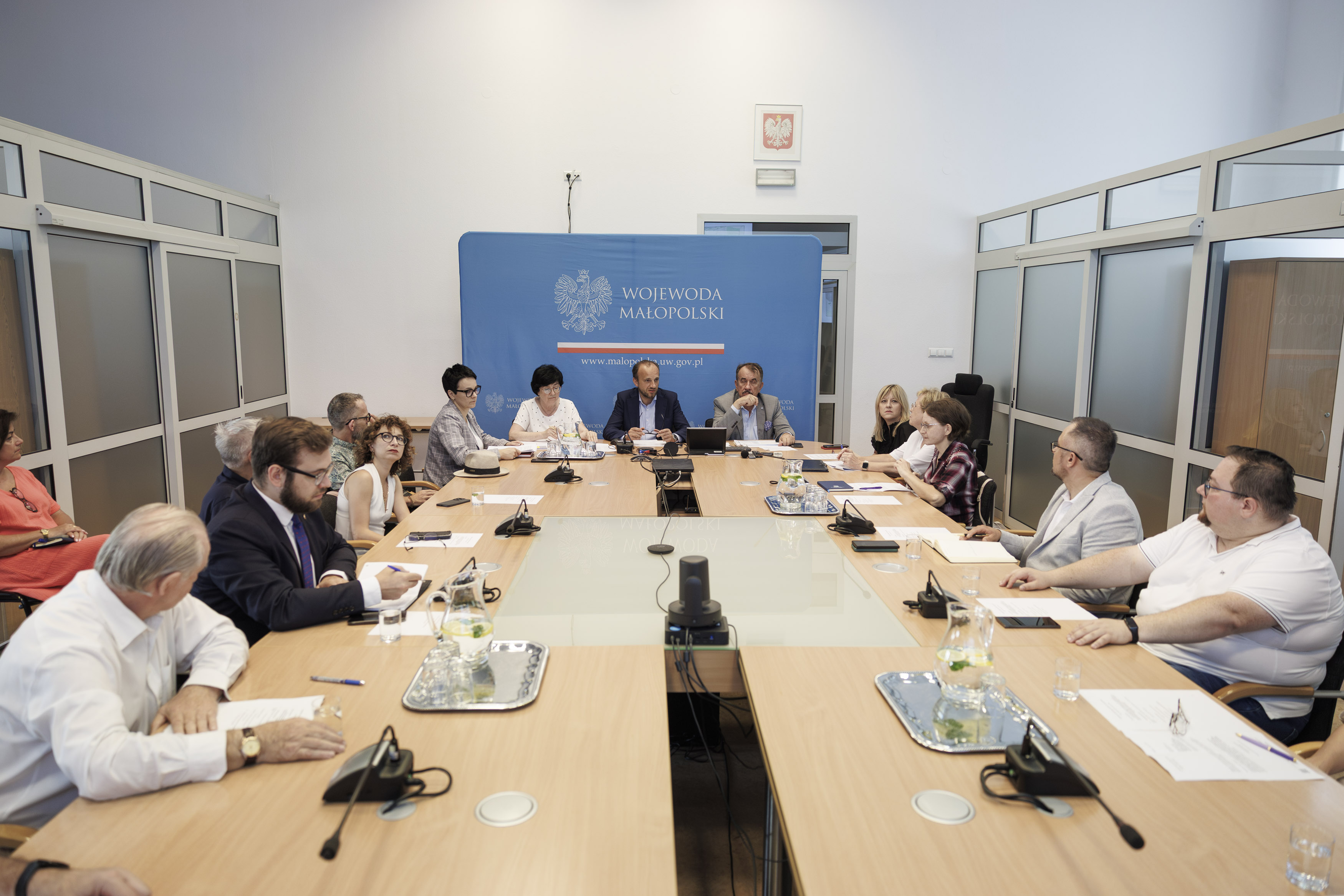 Po posiedzeniu odbył się briefing prasowy z udziałem: wojewody małopolskiego Krzysztofa Jana Klęczara, II wicewojewody małopolskiego i przewodniczącego Zespołu Ryszarda Śmiałka, dyrektora Regionalnego Zarządu Gospodarki Wodnej w Krakowie Wojciecha Kozaka oraz p.o. małopolskiego wojewódzkiego inspektora ochrony środowiska Barbara Żuk.