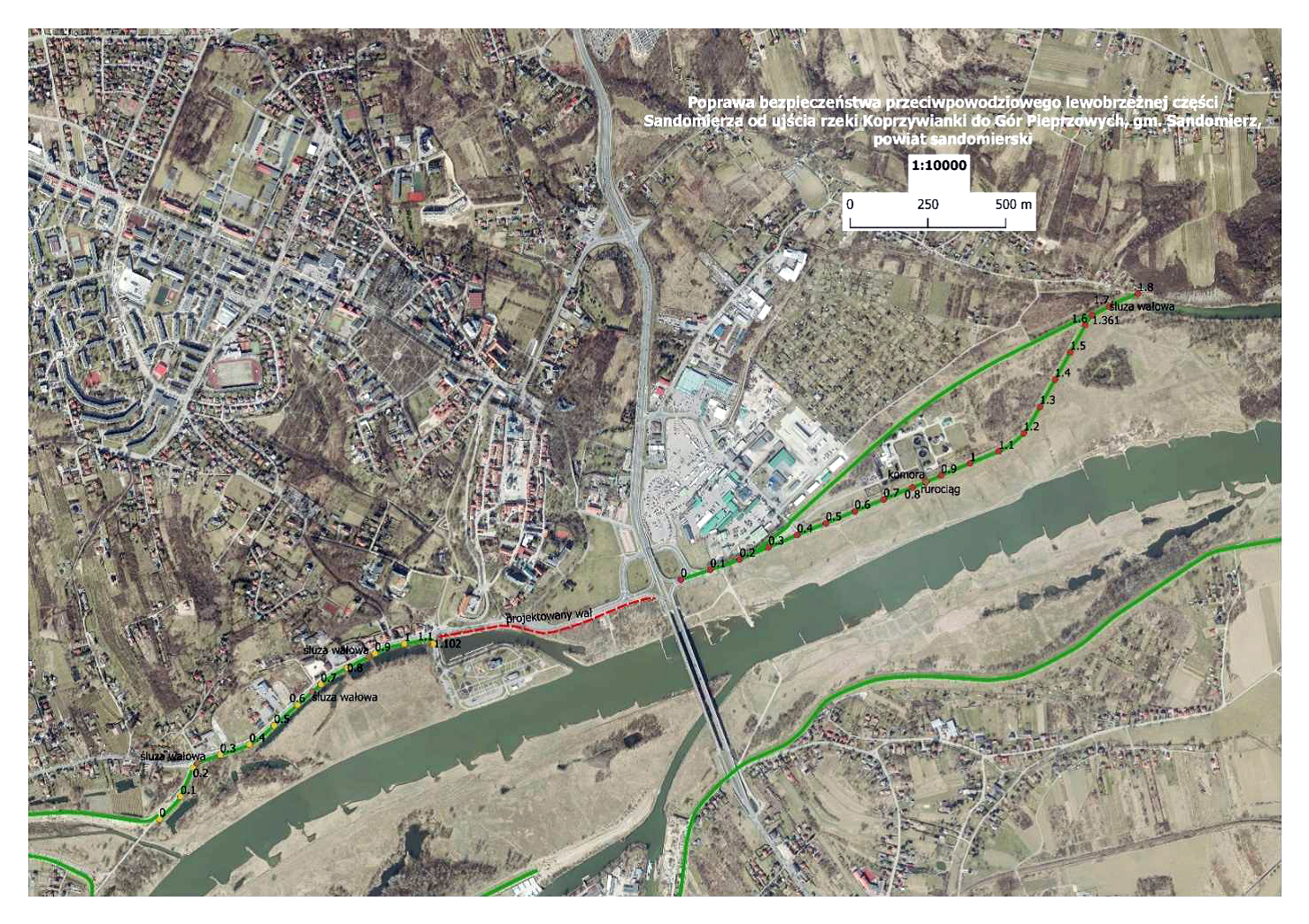 Zadanie „Poprawa bezpieczeństwa przeciwpowodziowego lewobrzeżnej części Sandomierza od ujścia rzeki Koprzywianki do Gór Pieprzowych” przewiduje rozbudowę obwałowań wraz z obiektami hydrotechnicznymi od ujścia rzeki Koprzywianki do drogi krajowej nr 79 oraz rozbudowę obwałowania na odcinku od drogi krajowej nr 79 do Gór Pieprzowych.