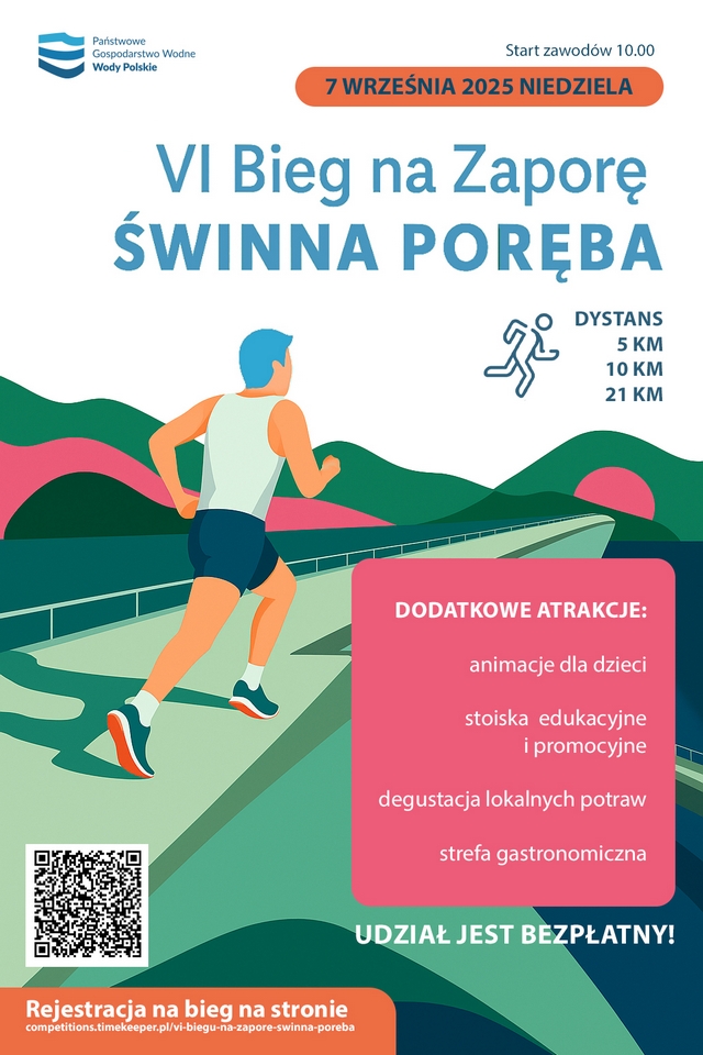 Regionalny Zarząd Gospodarki Wodnej w Krakowie, zaprasza do udziału w wydarzeniu VI BIEG NA ZAPORĘ ŚWINNA PORĘBA!