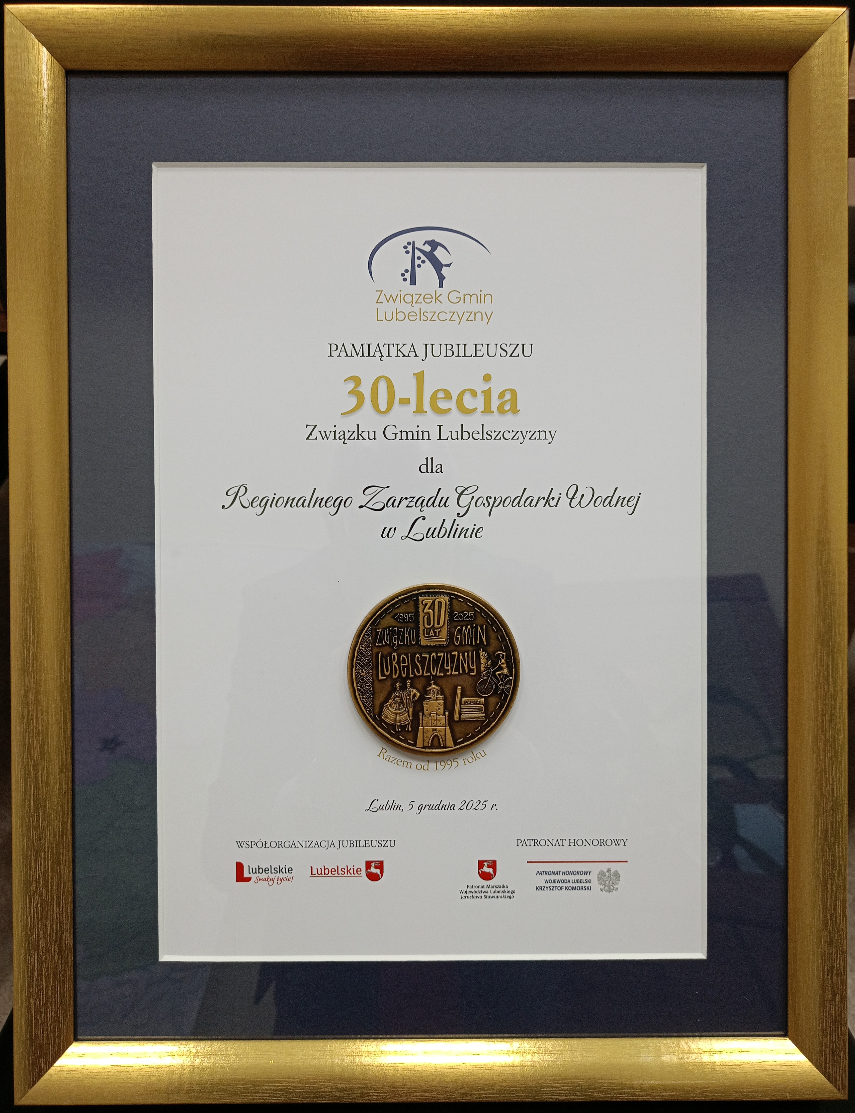 W trakcie uroczystości jednym z podmiotów, który został uhonorowany za współpracę ze Związkiem, był RZGW w Lublinie!