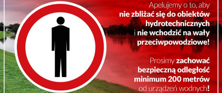 Prosimy o zachowanie bezpiecznej odległości, minimum 200 metrów, od infrastruktury hydrotechnicznej i rzek.