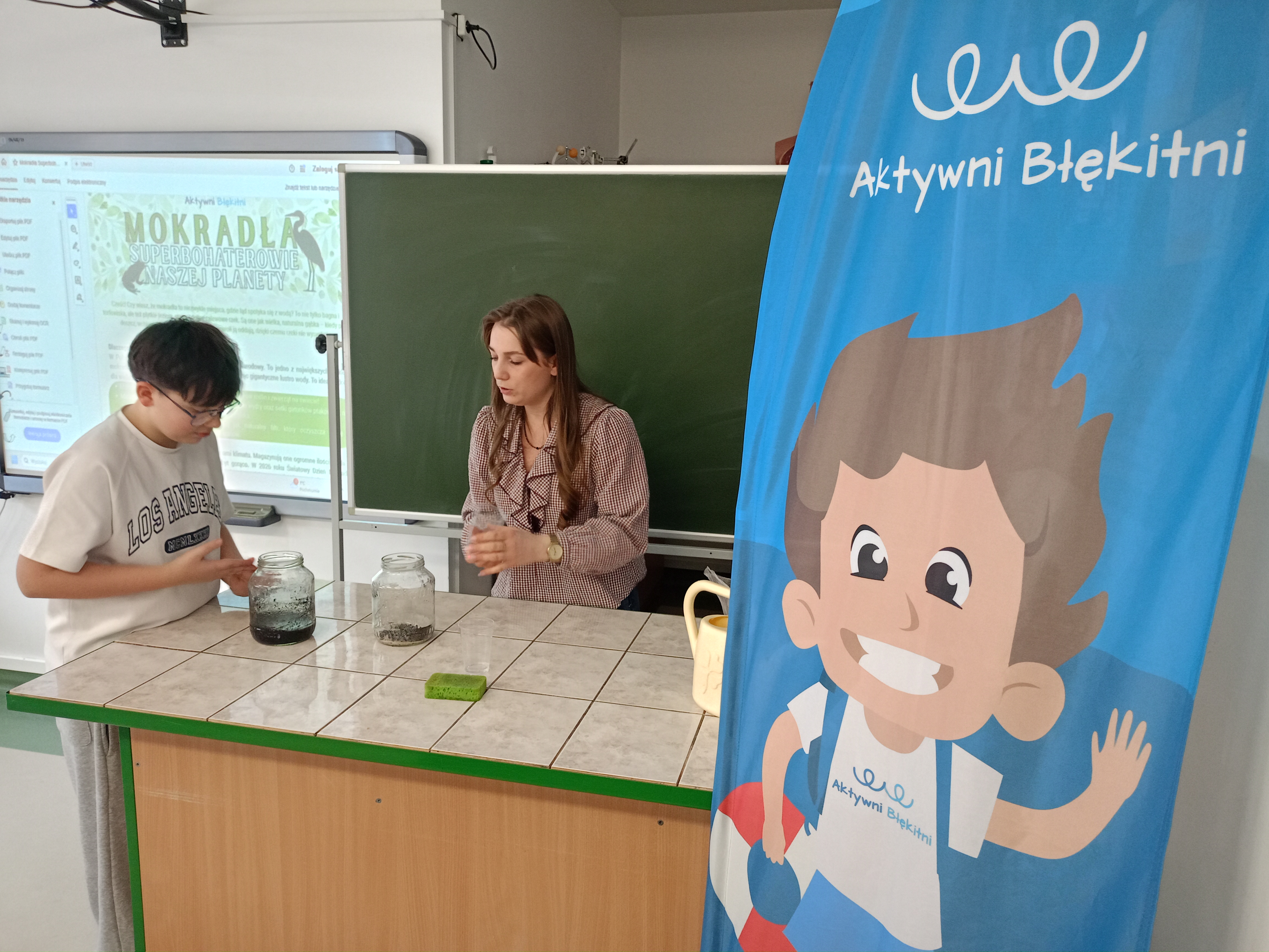 Dwie klasy siódme miały okazję dowiedzieć się, dlaczego mokradła nazywane są „nerkami Ziemi” (naturalnie oczyszczają wodę i chronią nas przed powodzią), jak wielkie bogactwo gatunków zwierząt i roślin można spotkać na terenach podmokłych i jak każdy z nas może przyczynić się do ich ochrony. Uczniowie mogli również samodzielnie tworzyć modele mokradeł, aby zobaczyć, jak one działają.