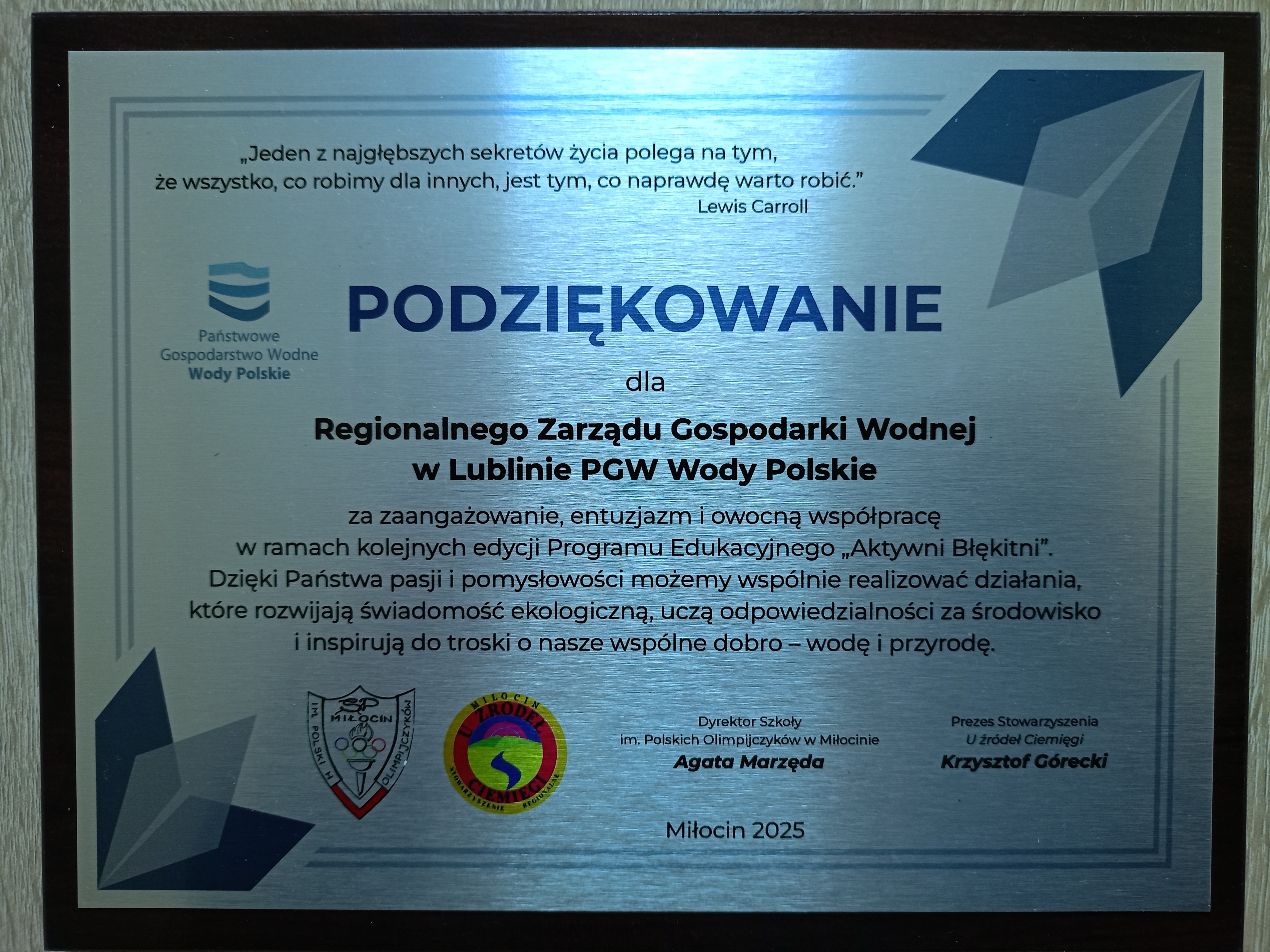 Spotkanie w Miłocinie pokazało, że „Aktywni Błękitni”, w którym szkoła bierze udział już po raz czwarty to nie tylko program edukacyjny poszerzający wiedzę o gospodarce wodnej i kształtujący postawy proekologiczne. „Aktywni Błękitni” to także możliwość integracji społeczności lokalnej wokół ważnych tematów środowiskowych.
