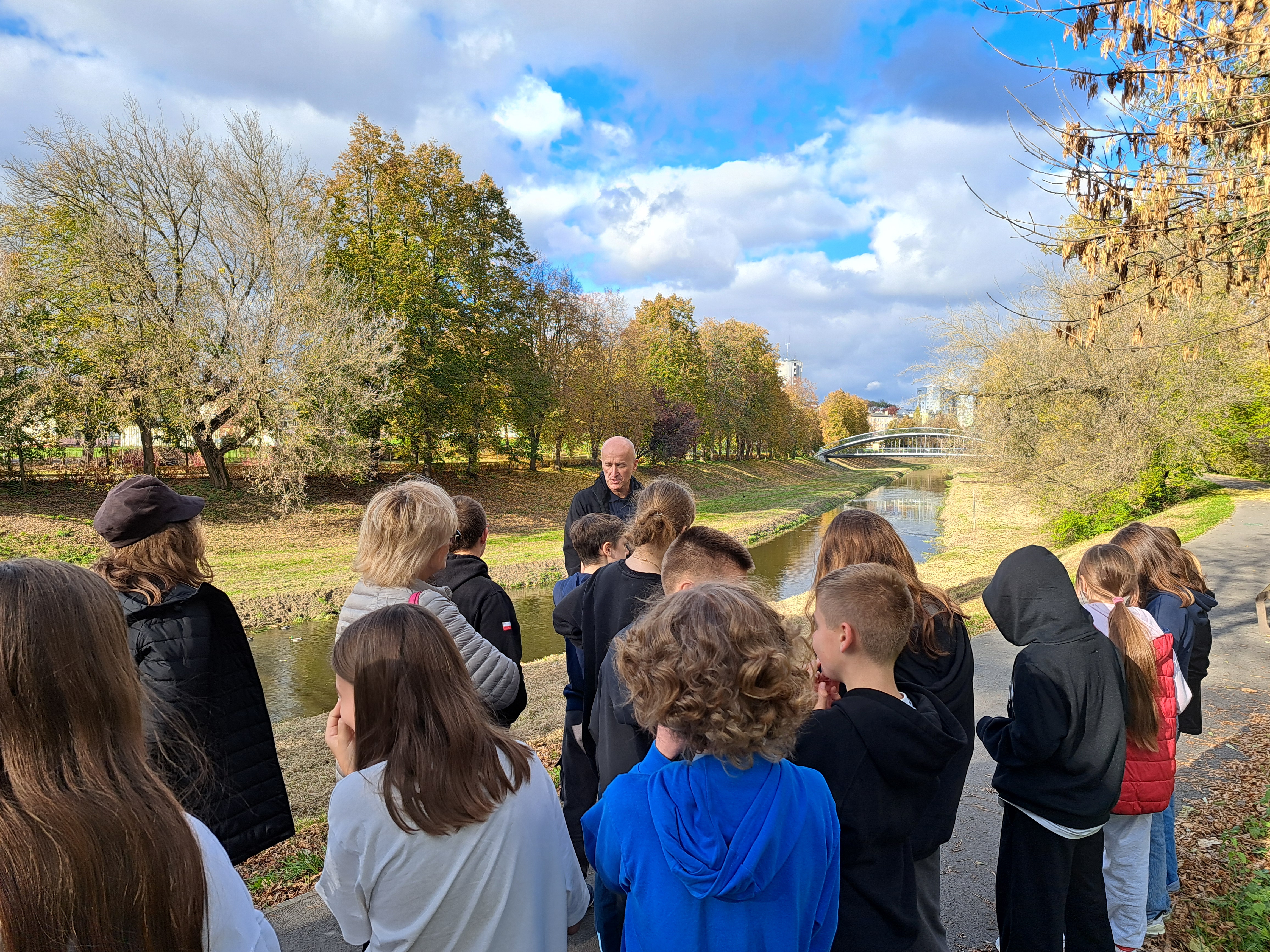 W trakcie dwóch godzin lekcyjnych opowiedzieliśmy o przyczynach powstawania tak groźnego zjawiska, jakim są powodzie i w jaki sposób Wody Polskie przeciwdziałają ich powstawaniu. Uczniowie mieli też okazję zapoznać się w historią powodzi w Lublinie. Kolejnym tematem były nasze działania podczas powodzi w 2010 r. w województwie lubelskim oraz pomoc i wsparcie techniczne - również z wykorzystaniem dronów - jakiego udzieliliśmy podczas tegorocznej powodzi na Dolnym Śląsku. Drugą częścią zajęć była krótka wycieczka na wały przeciwpowodziowe przy rzece Bystrzyca, gdzie uczniowie mieli okazję poznać, jak taka konstrukcja zabezpiecza Lublin przed wylewami i podtopieniami.